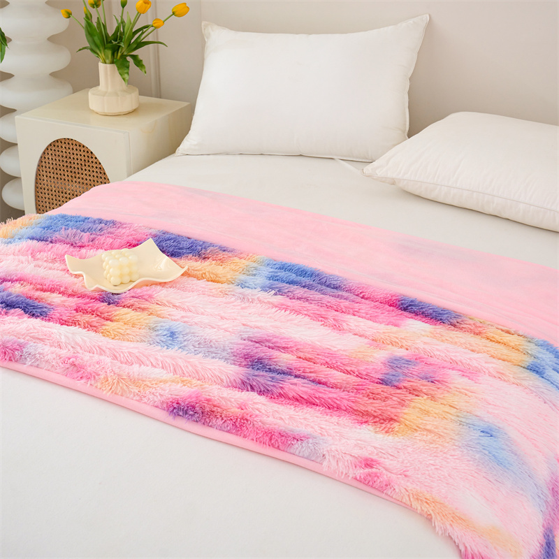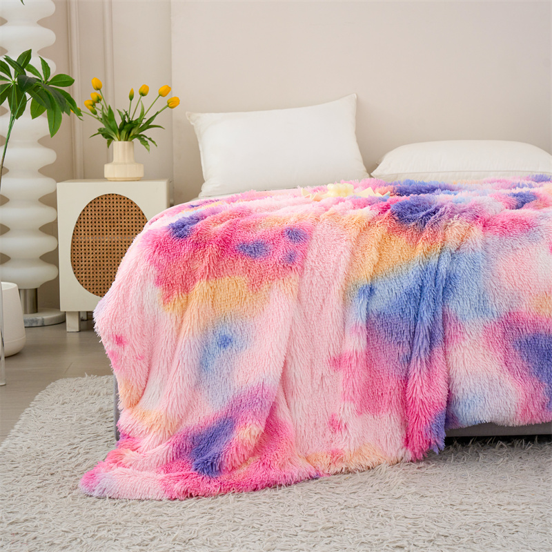 品尚嘉 水貂绒毛毯长毛绒法莱绒双层跨境外贸毯子-扎染系 扎染-新彩虹