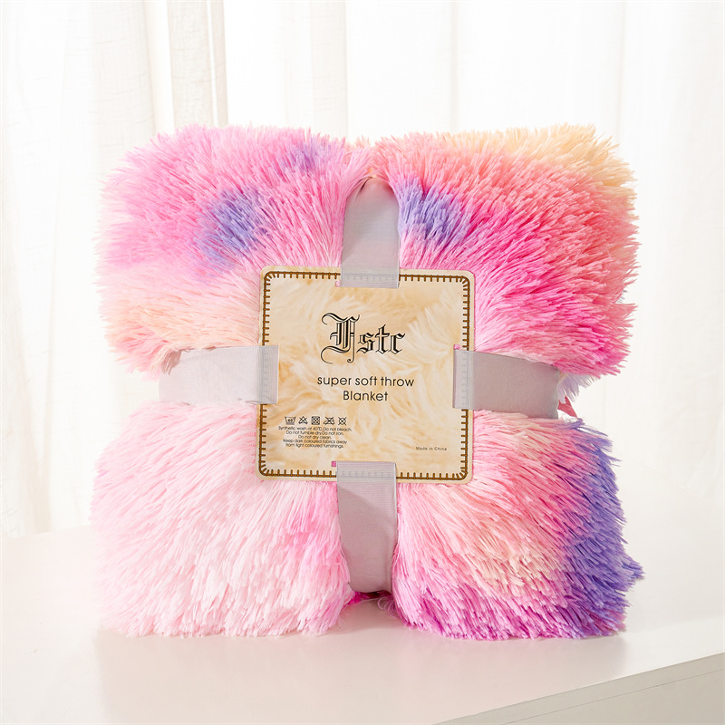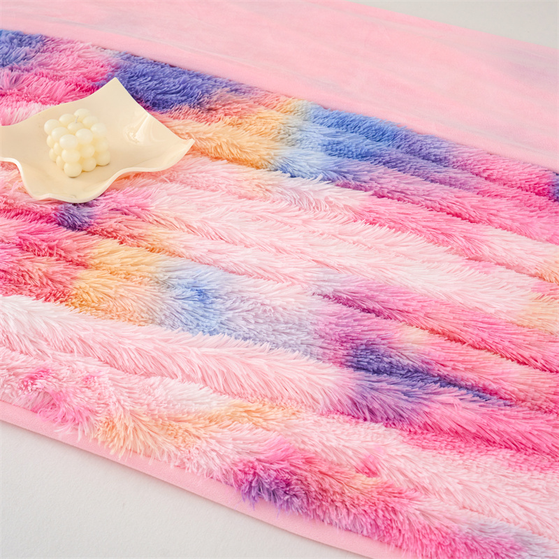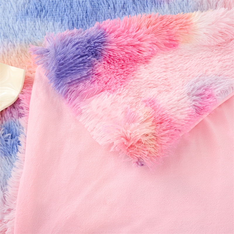 商品名称:品尚嘉 水貂绒毛毯长毛绒法莱绒双层跨境外贸毯子-扎染系 扎染-新彩虹