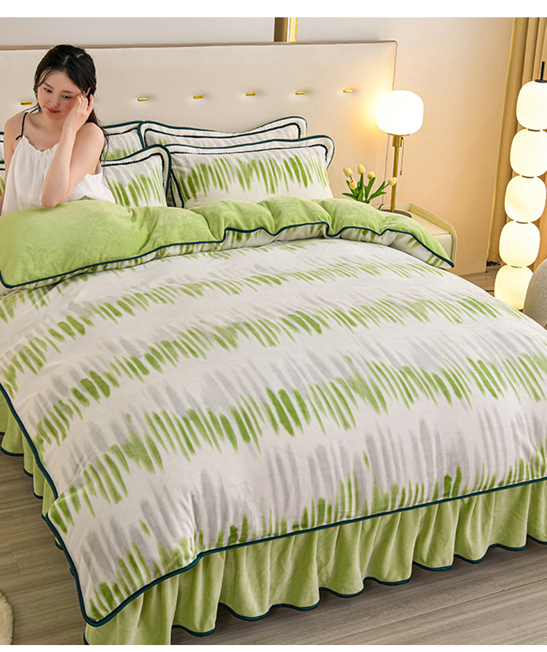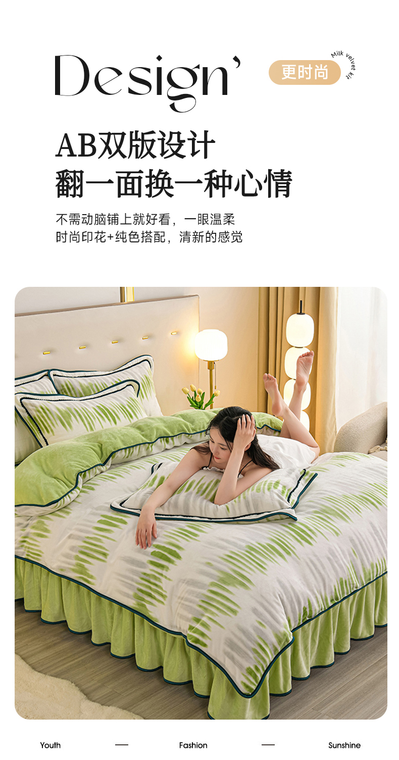 赫本家纺 2025新品8-9斤爆品牛奶绒四件套床裙款金雕绒法莱绒四套件 趣生活