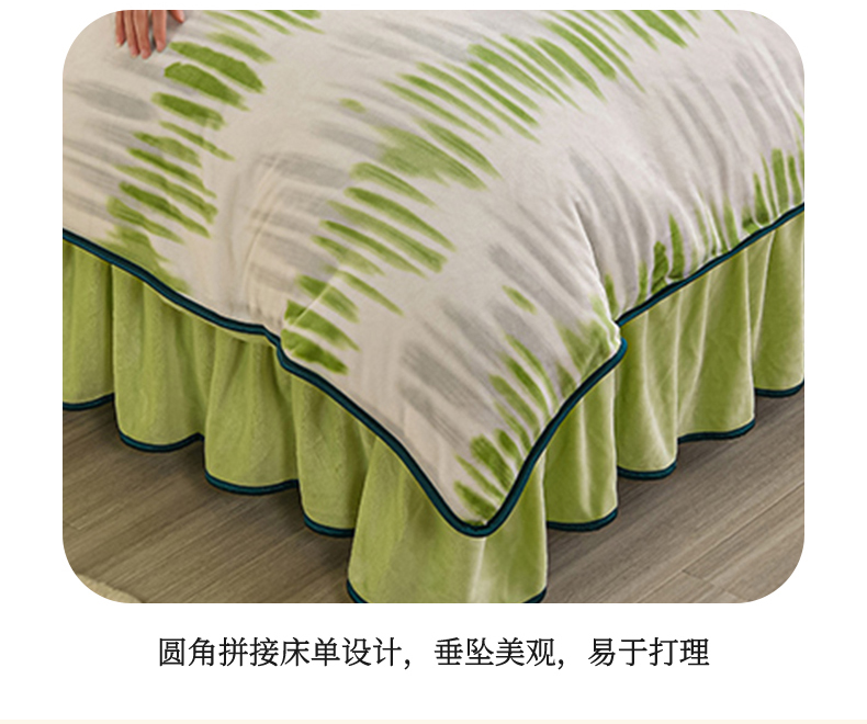 赫本家纺 2025新品8-9斤爆品牛奶绒四件套床裙款金雕绒法莱绒四套件 熊猫乐园-绿,熊猫乐园-绿