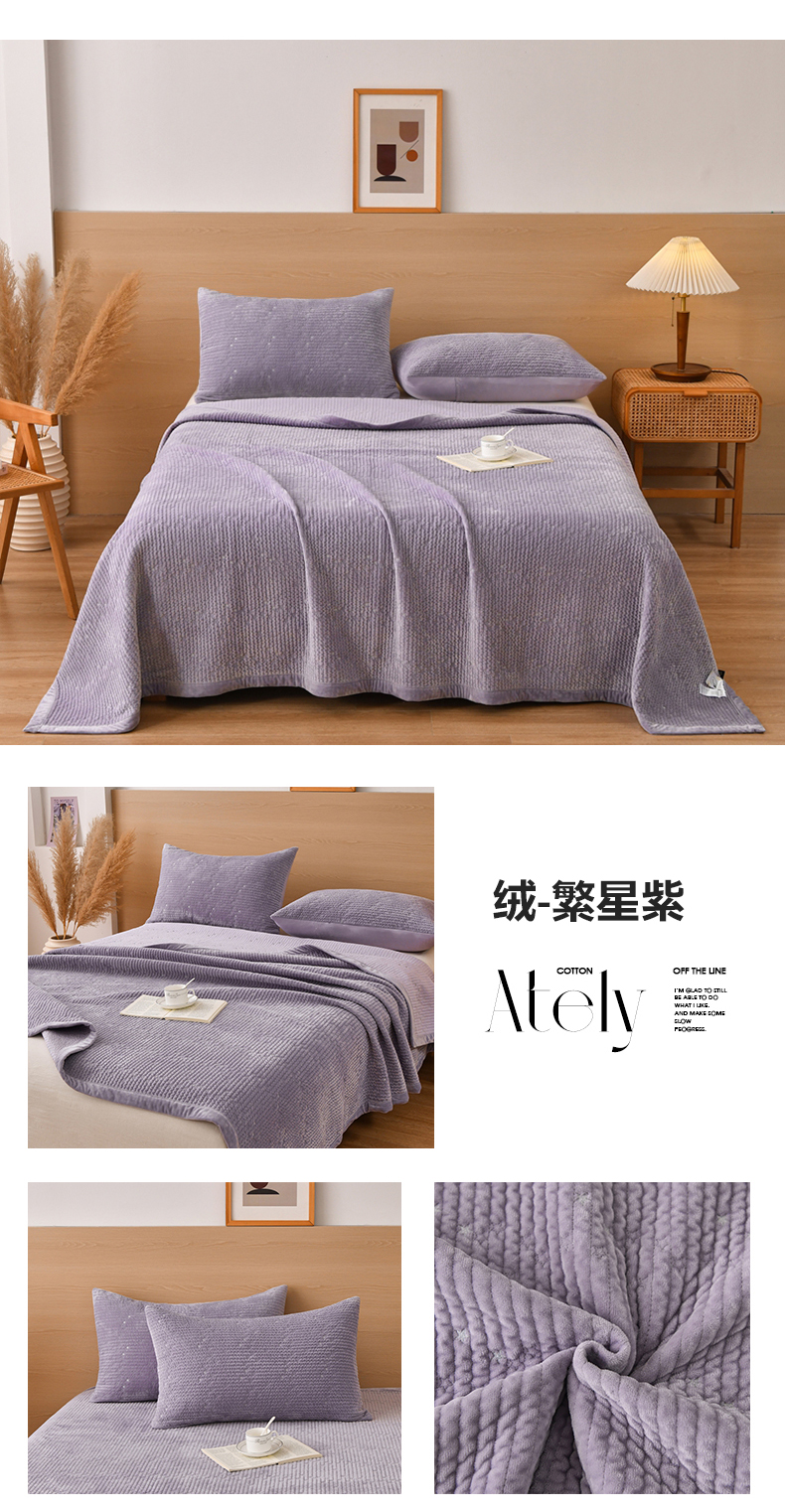 有货 2024新款消光透气暖绒繁星床盖三件套 绒-繁星紫