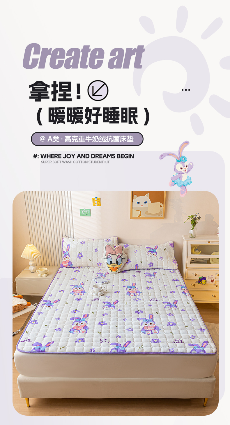 (总)卡伦家纺 2025新款A类牛奶绒夹棉加厚床垫单人双人床垫保护垫,爱的印记,爱心熊,安妮宝贝,宝石蓝,缤纷小可爱,草莓之恋,呆萌恐龙,高级灰,高雅紫,红豆沙,花间蘑力,花开一夏,花之谷,金叶飘香,开心乐园,梦想创造家,抹茶绿,南瓜灰灰,南瓜派,青春曲调,轻羽飞扬,甜蜜爱心,甜心小熊,香槟金,心相印,星幻恐龙,星梦露,熊熊世界,樱桃花语,云端漫步