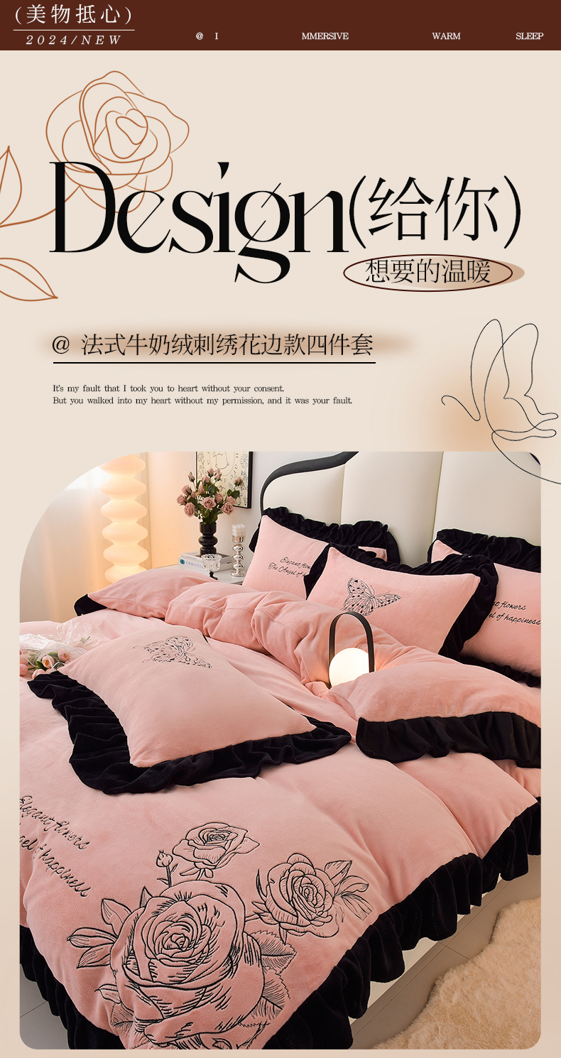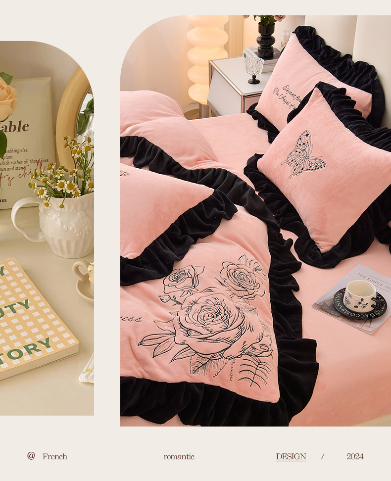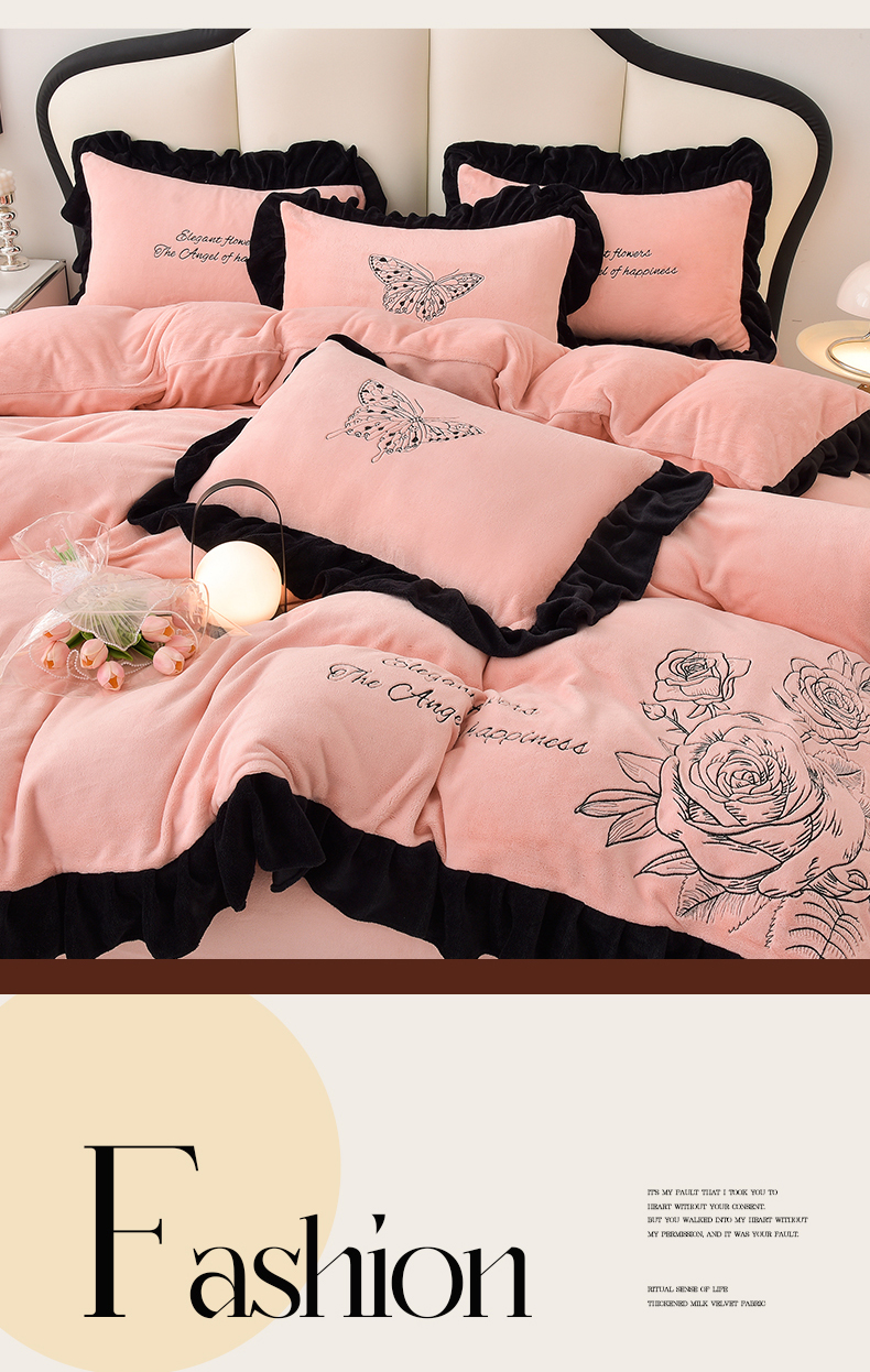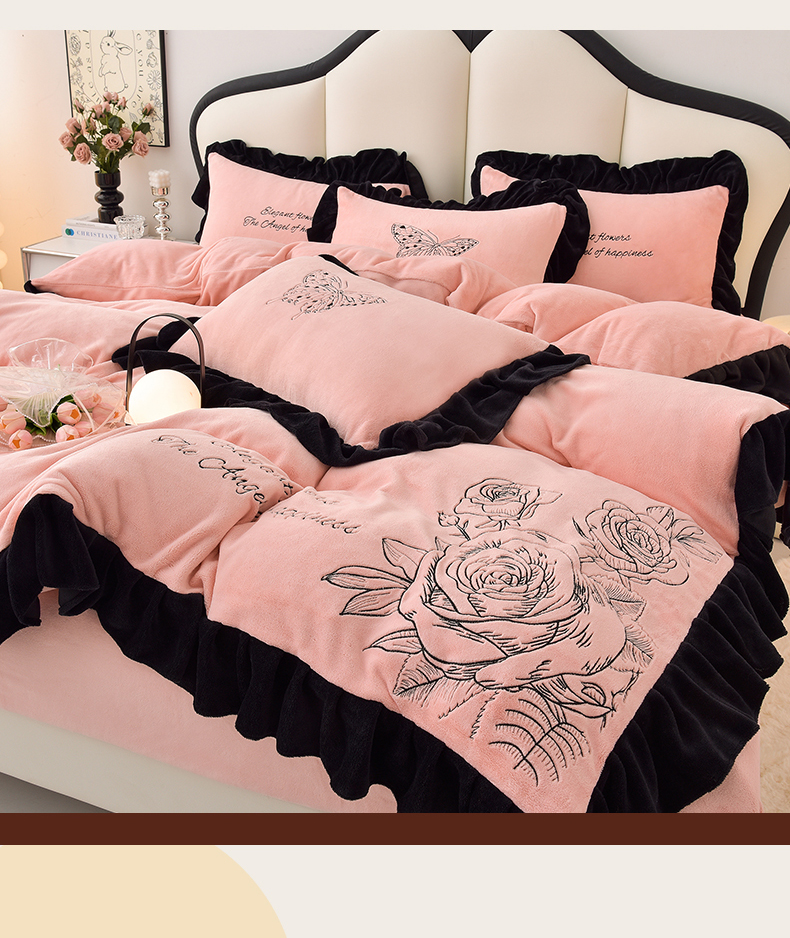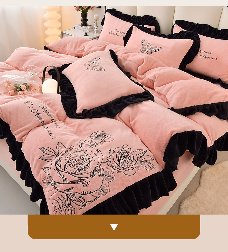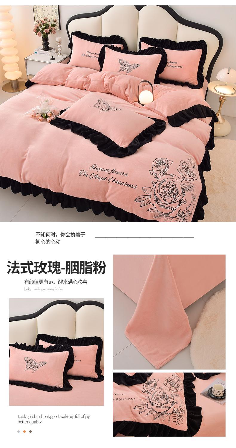 (总)炫拼家纺 2024新款法式牛奶绒刺绣花边四件套