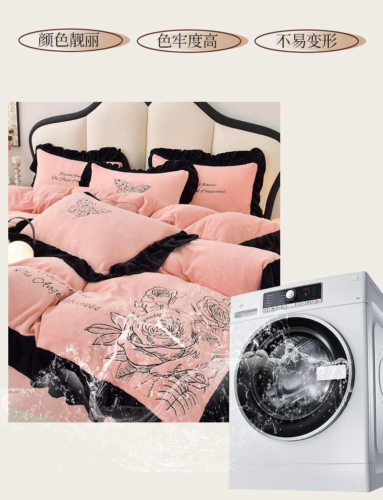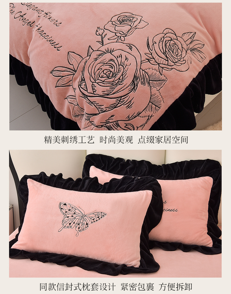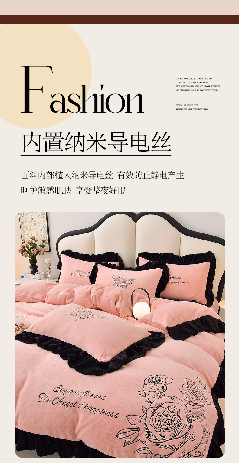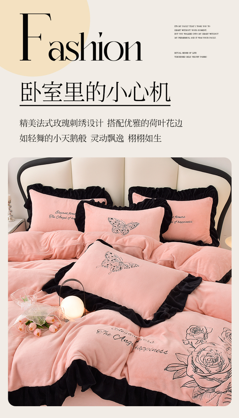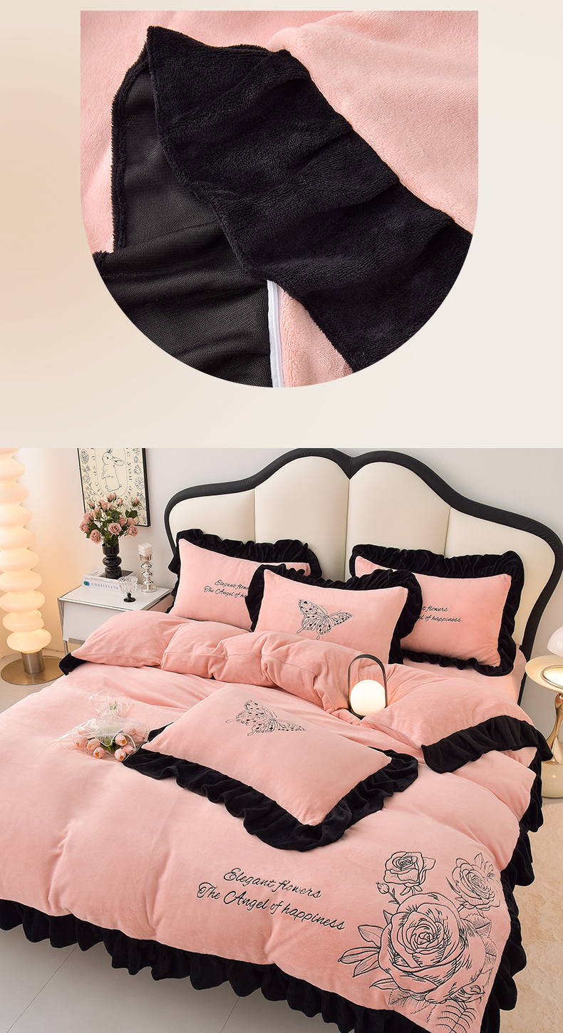 (总)炫拼家纺 2024新款法式牛奶绒刺绣花边四件套