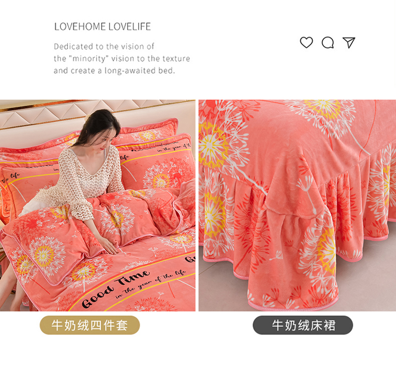 绒品荟家纺 2025新款牛奶绒四件套 美好时光
