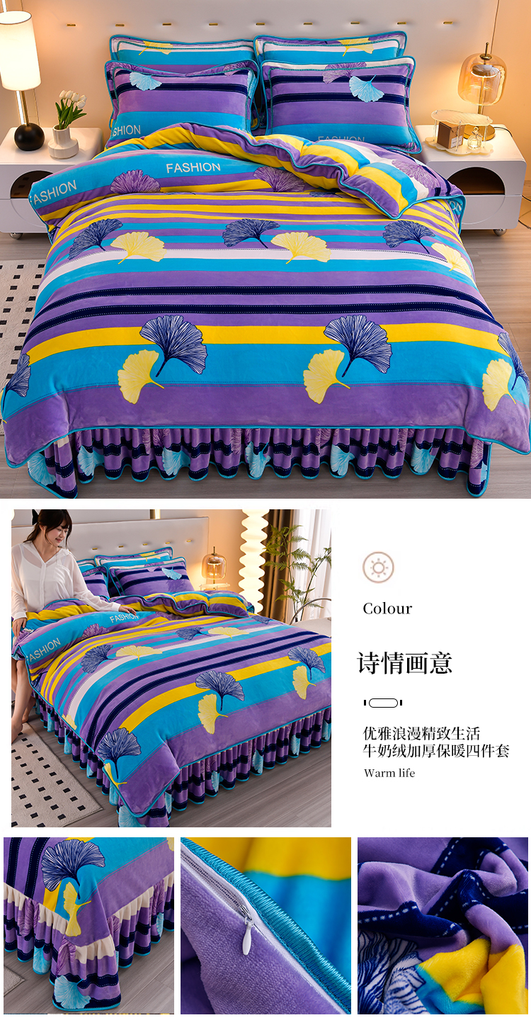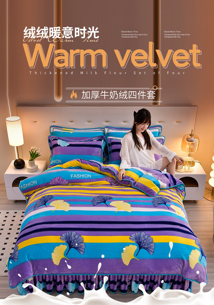 绒品荟家纺 2025新款牛奶绒四件套 诗情画意