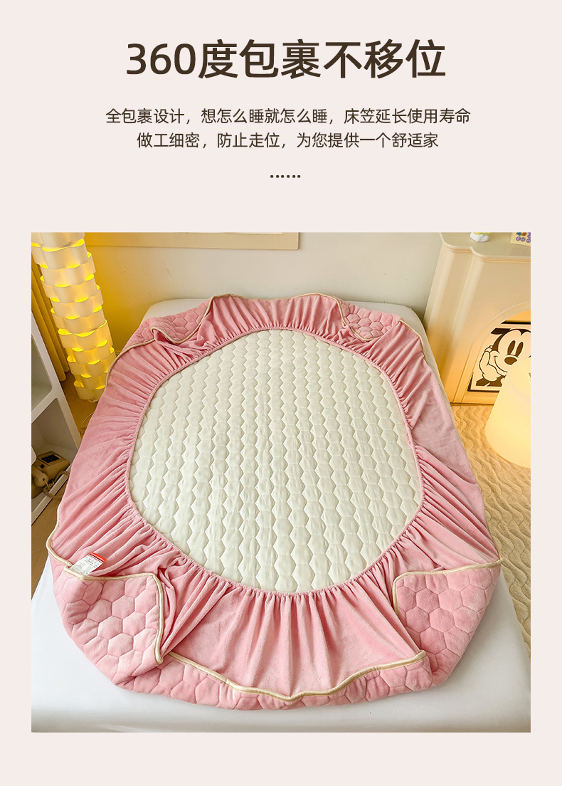 • 91家纺网 家纺一手货源 找家纺 圣比熊 2025新款牛奶绒夹棉床笠三件套床罩床单床盖护垫套 樱花粉