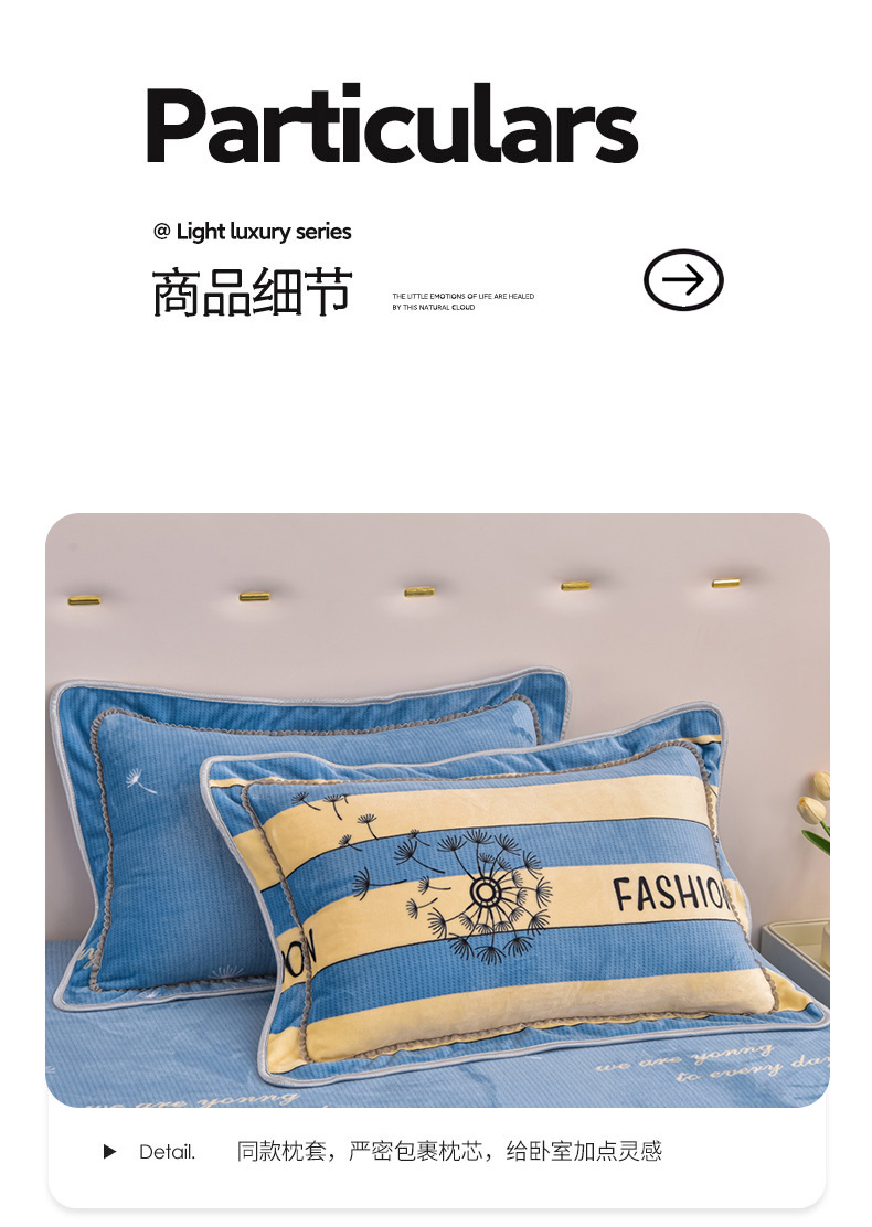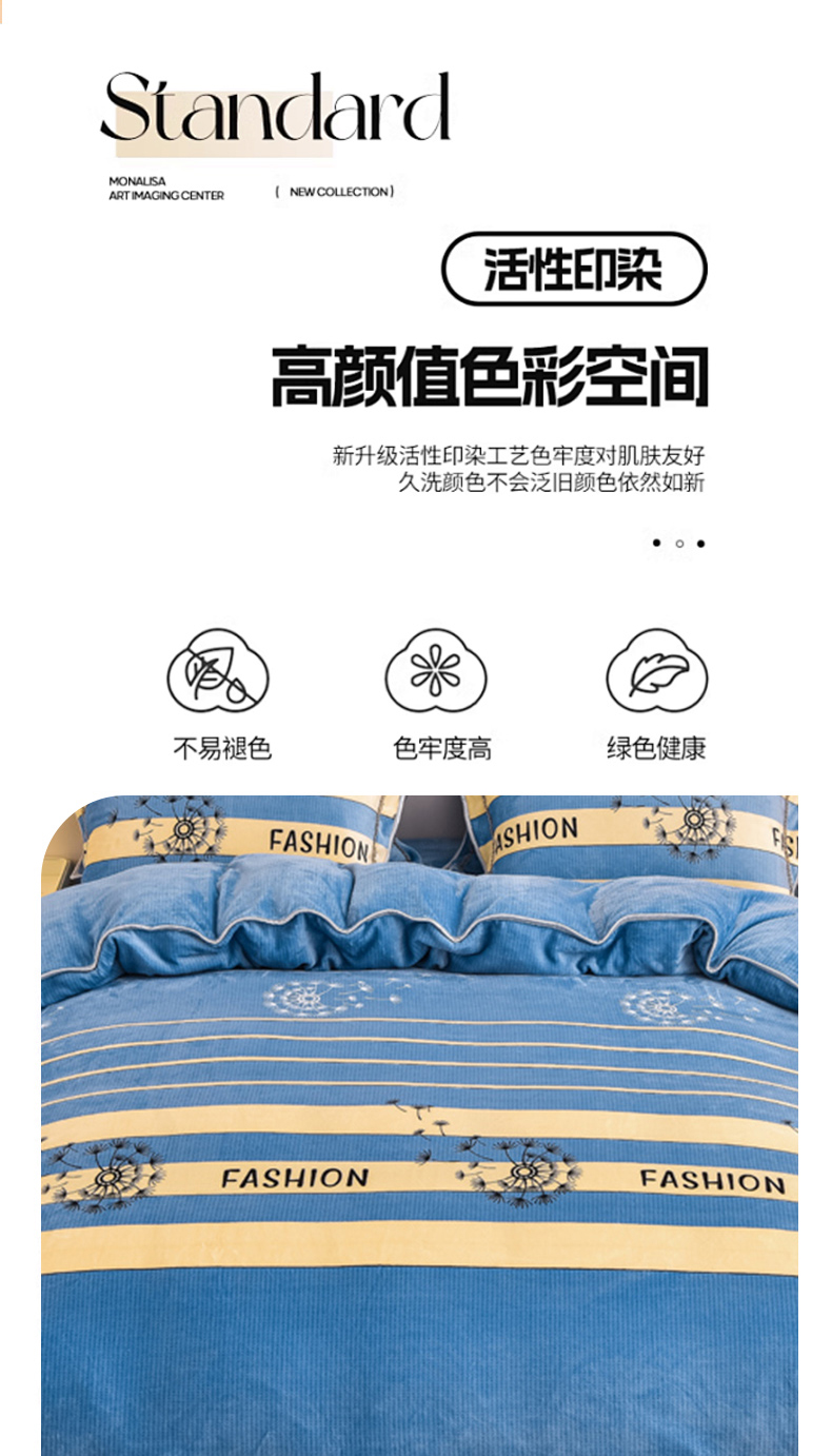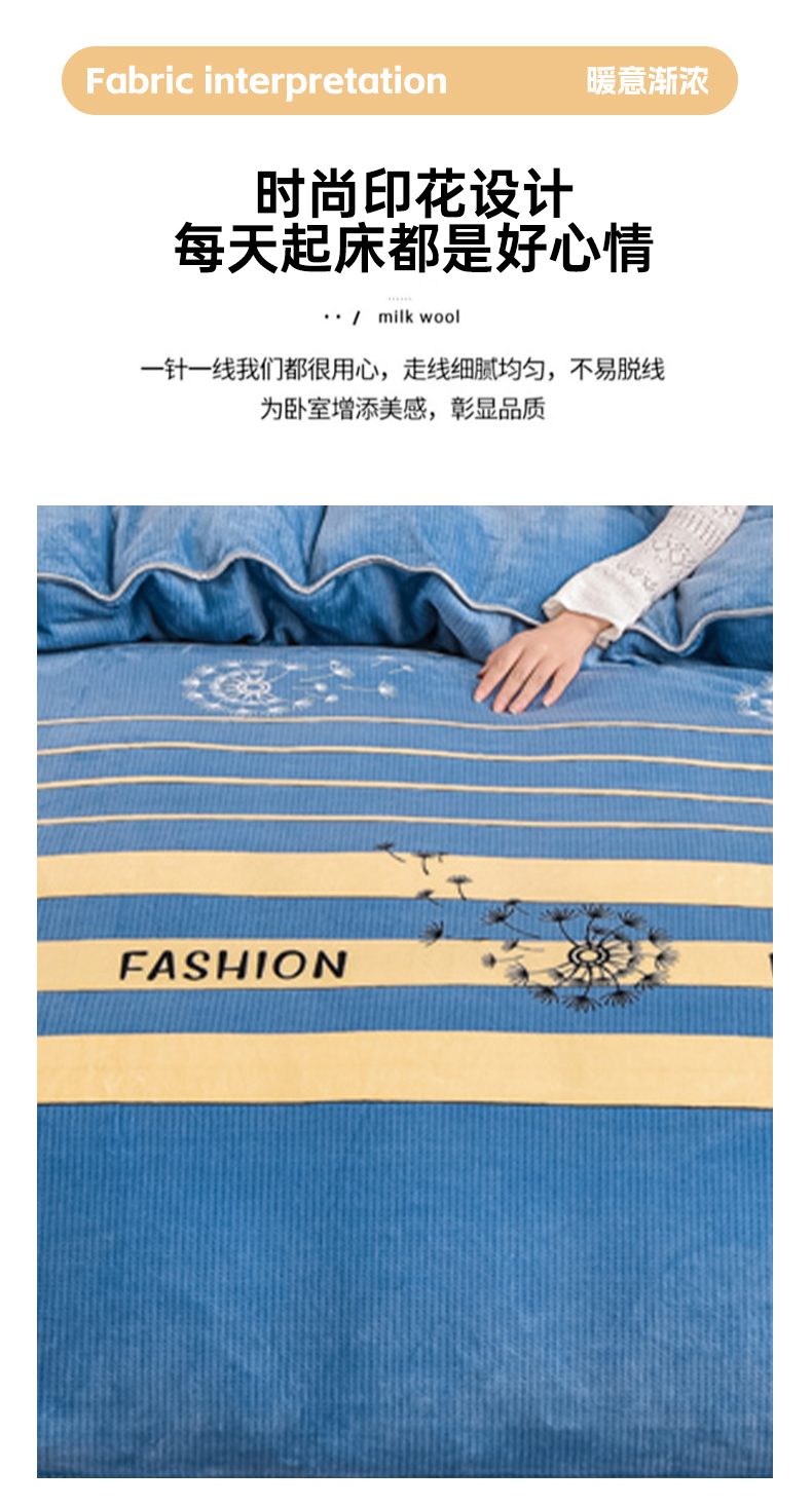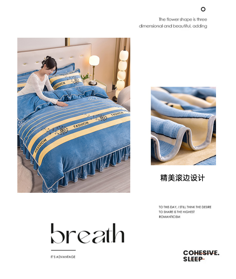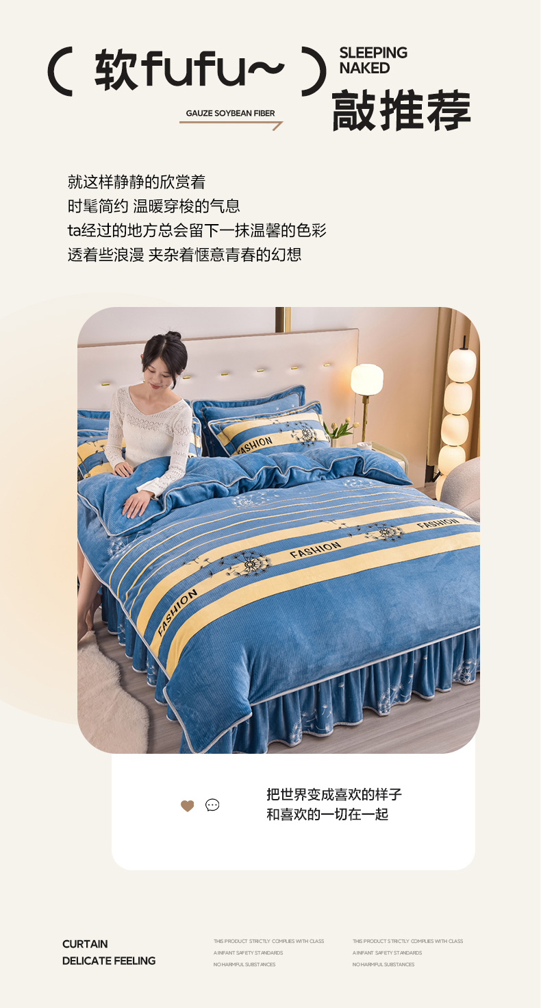 商品名称:晚静家纺 2024新款8.5斤牛奶绒金貂法莱绒床裙款保暖绒四件套 蓝色蒲公英