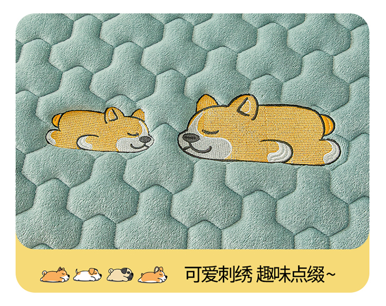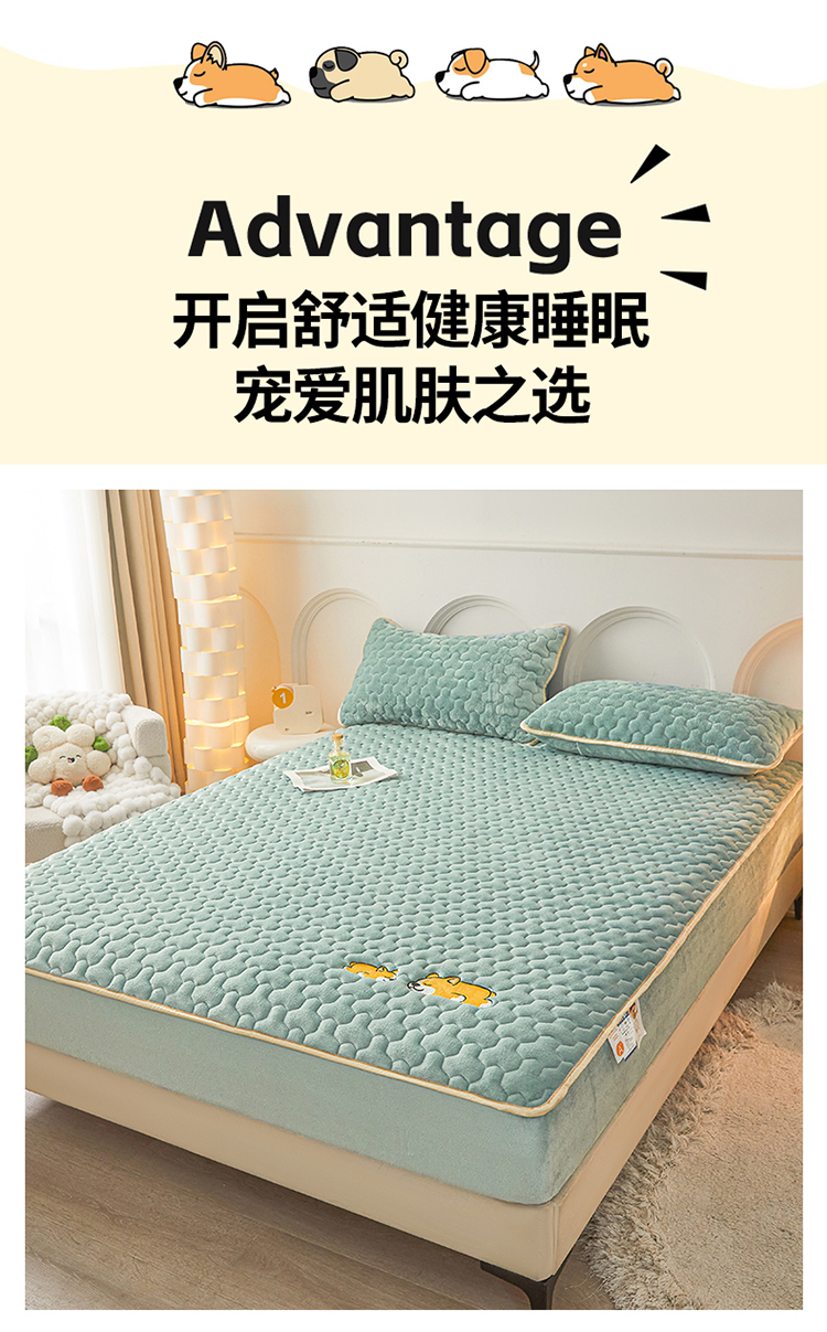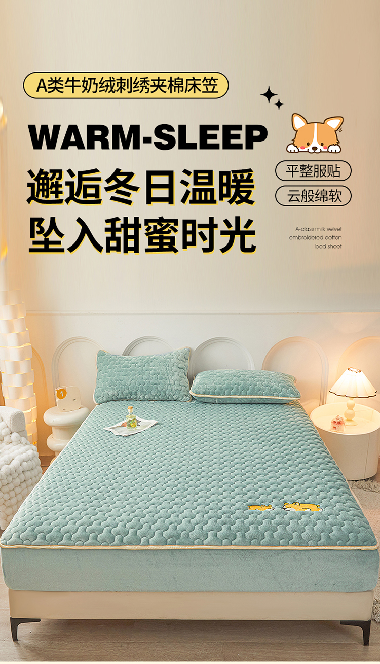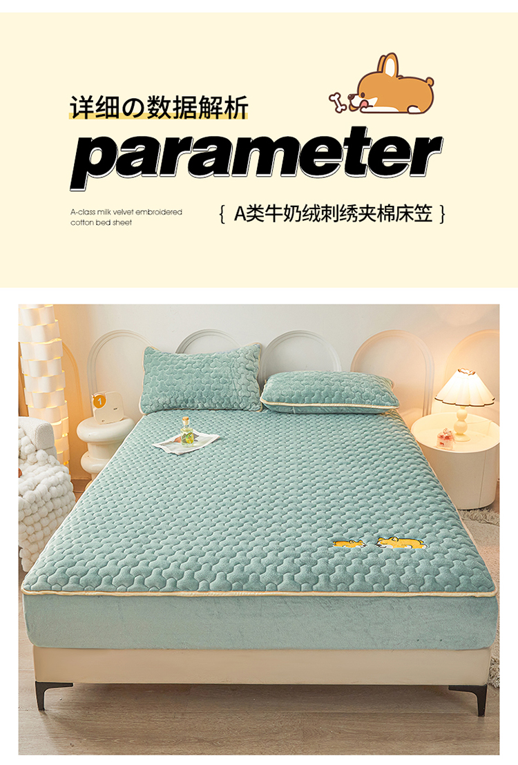 • 91家纺网 家纺一手货源 找家纺 2024新款A类牛奶绒刺绣夹棉床笠-小柯基 小柯基-清新蓝