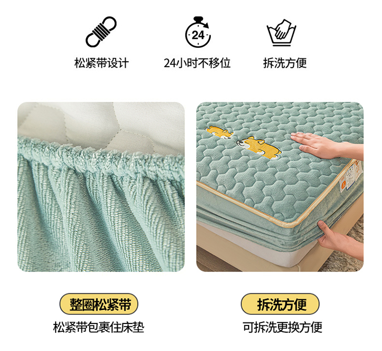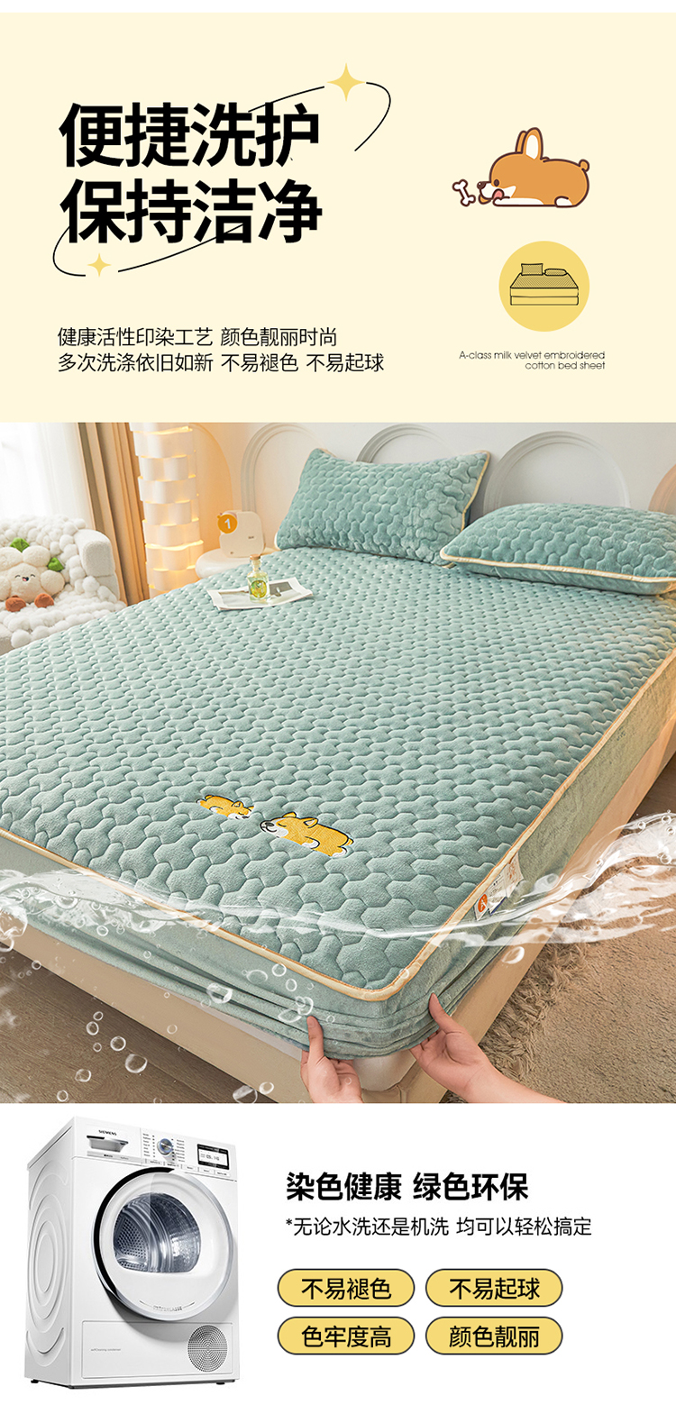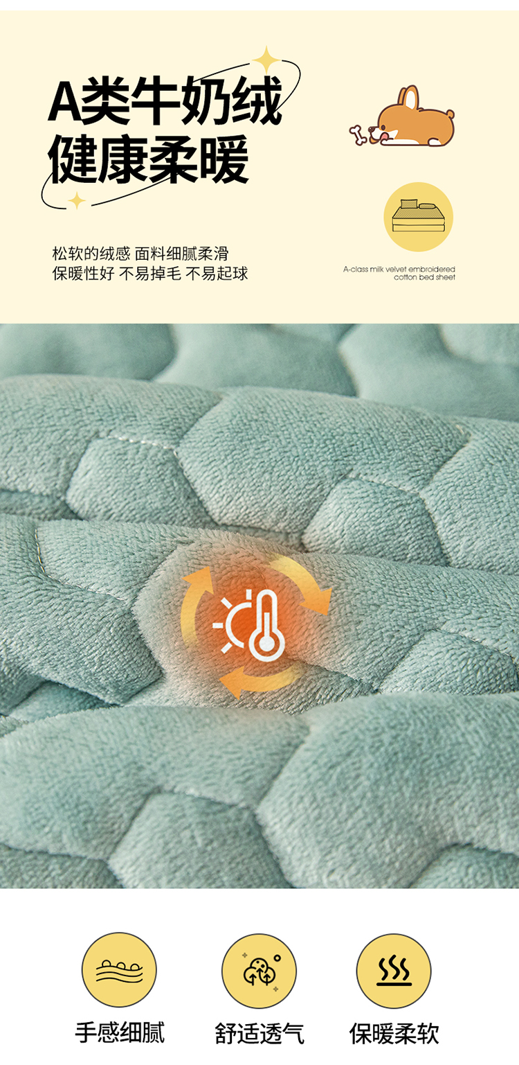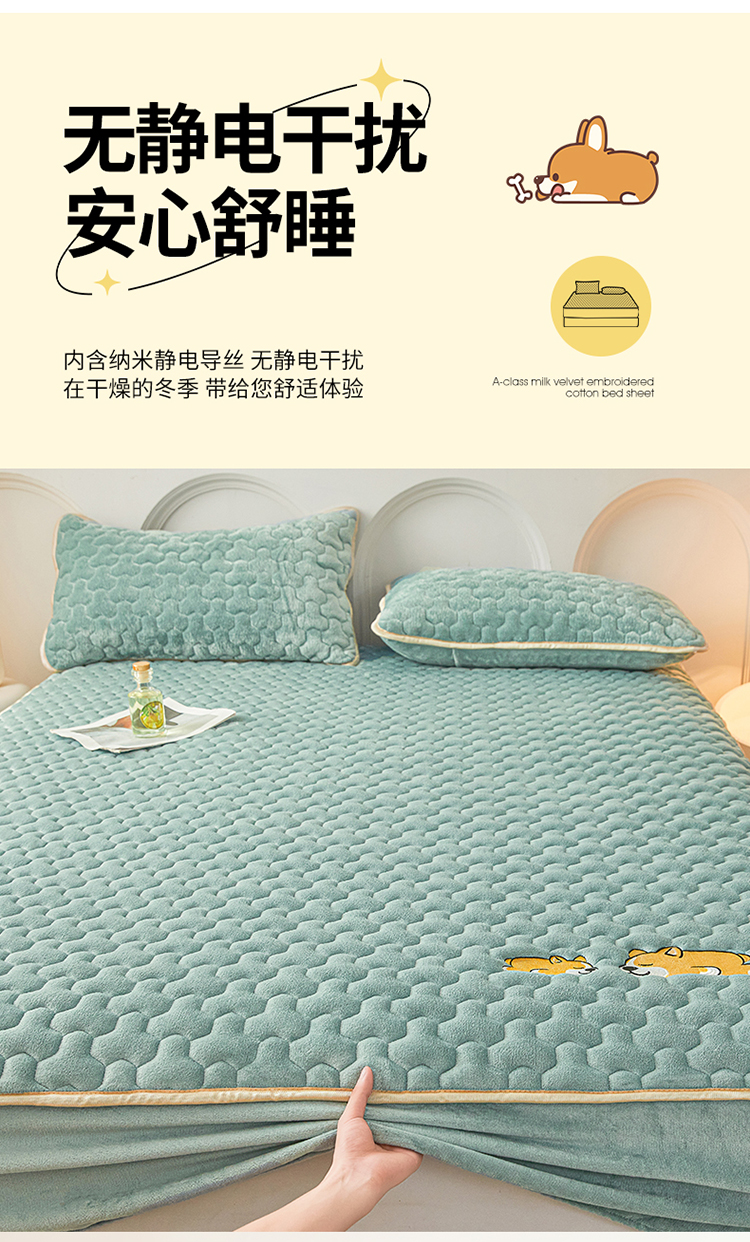 • 91家纺网 家纺一手货源 找家纺 2024新款A类牛奶绒刺绣夹棉床笠-小柯基 小柯基-清新蓝