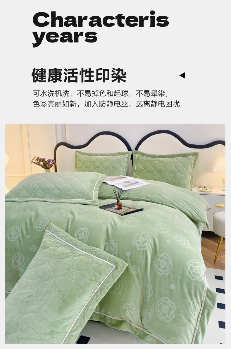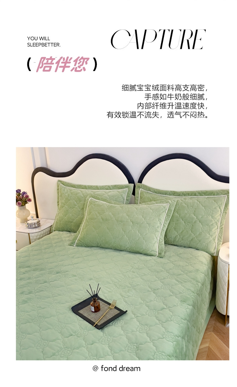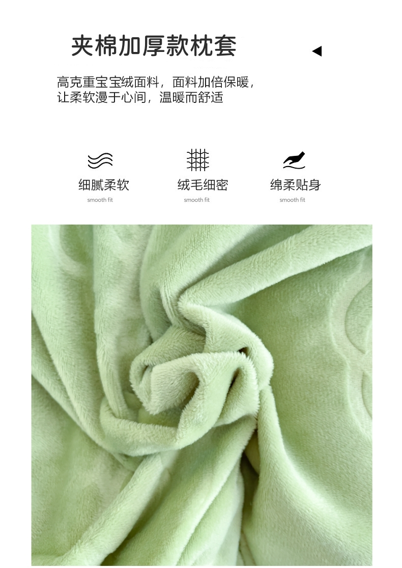 商品名称:优乐家纺 2025新款高克重宝宝绒夹棉床盖系列单枕套 爱丽丝-青春绿