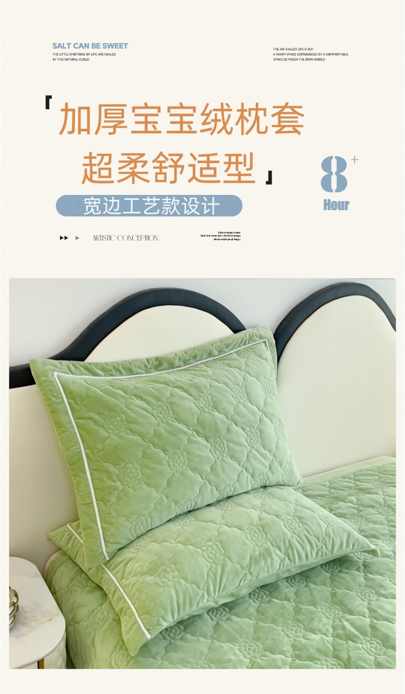 优乐家纺 2025新款高克重宝宝绒夹棉床盖系列单枕套 爱丽丝-青春绿