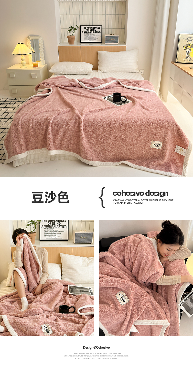 商品名称:沐棉 2024新款牛奶绒菠萝格包边羊羔绒泰迪绒毛毯-静物图 豆沙色