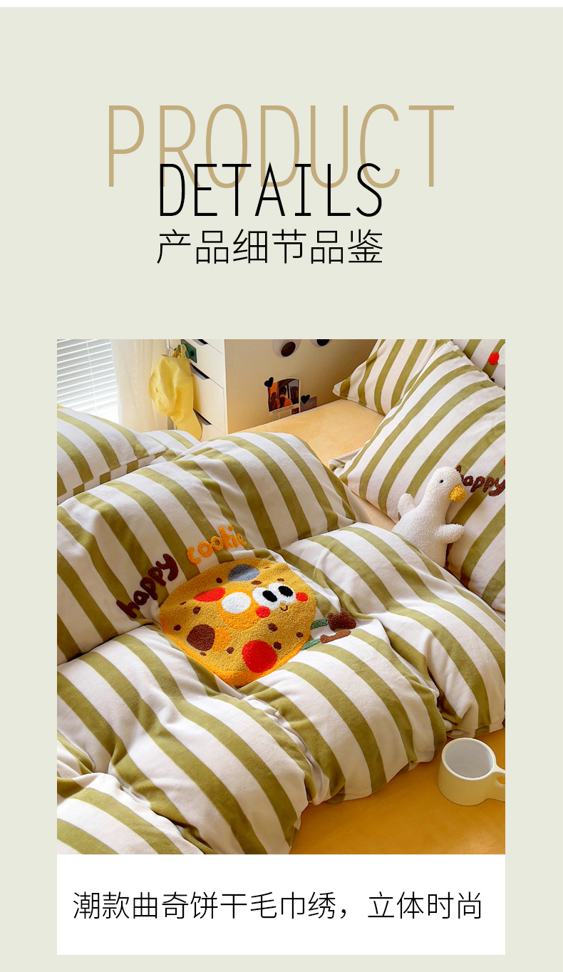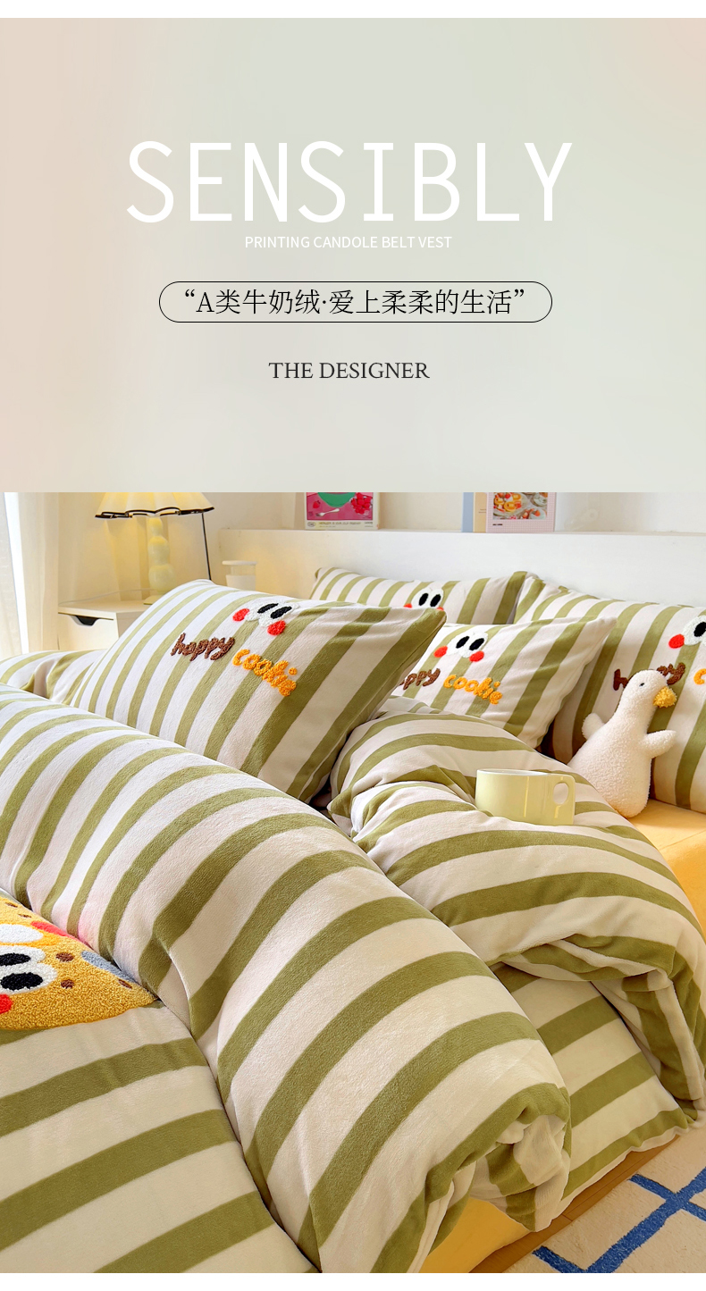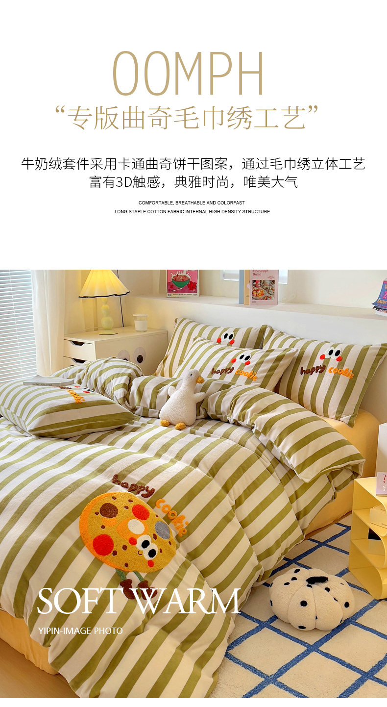 商品名称:丝羽坊 2024新款A类牛奶绒毛巾绣四件套-曲奇 曲奇-绿