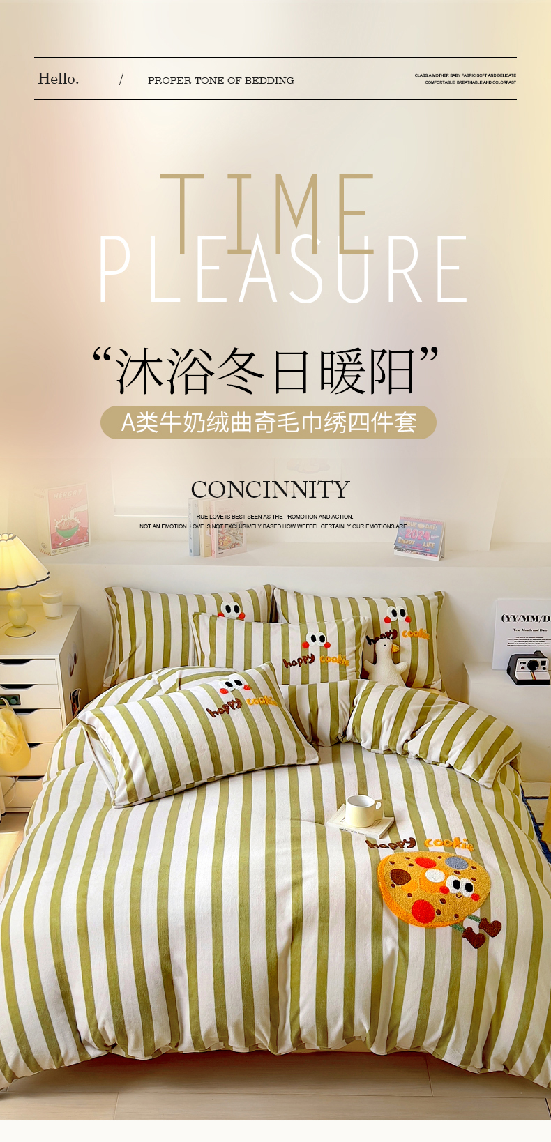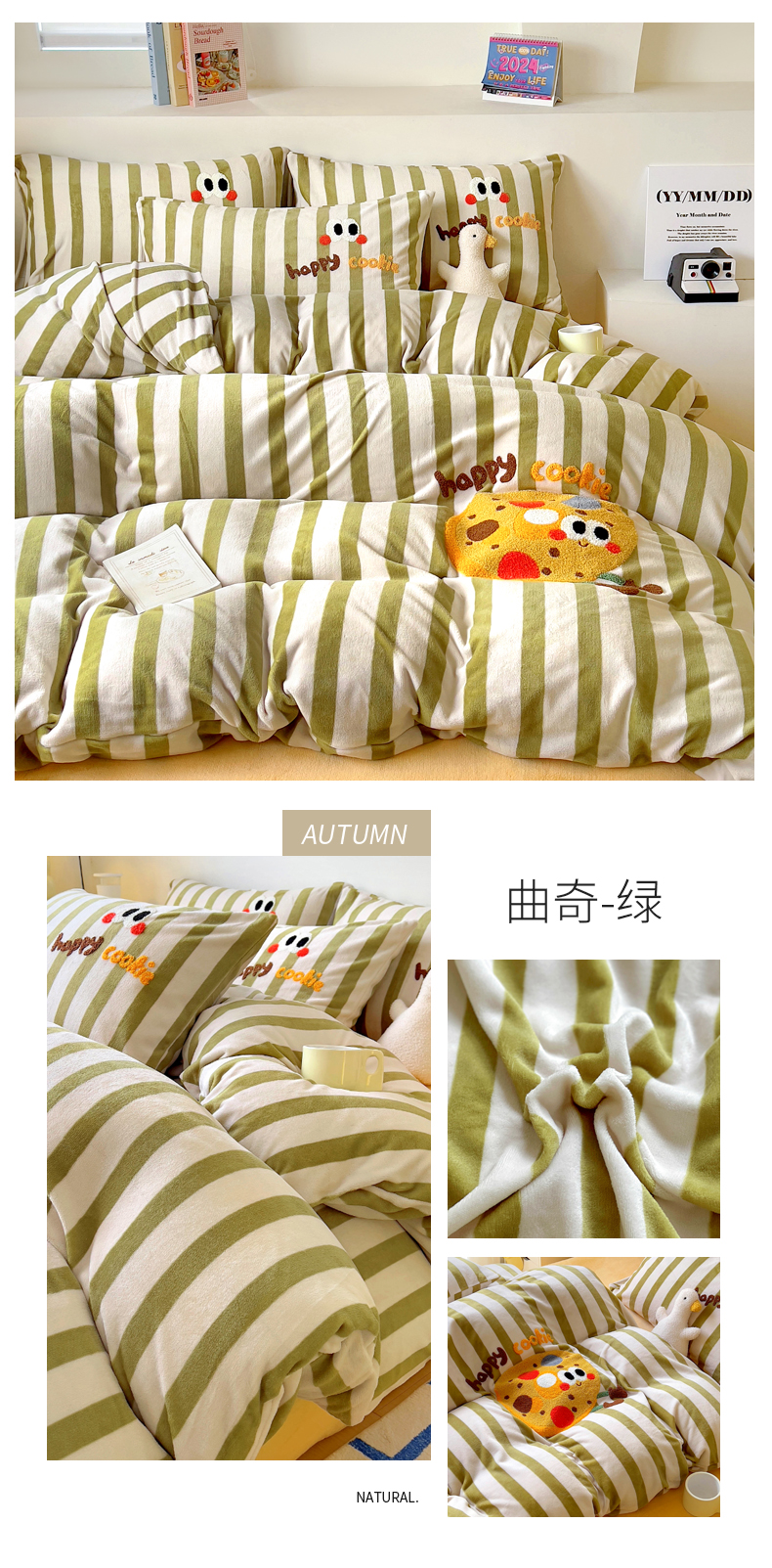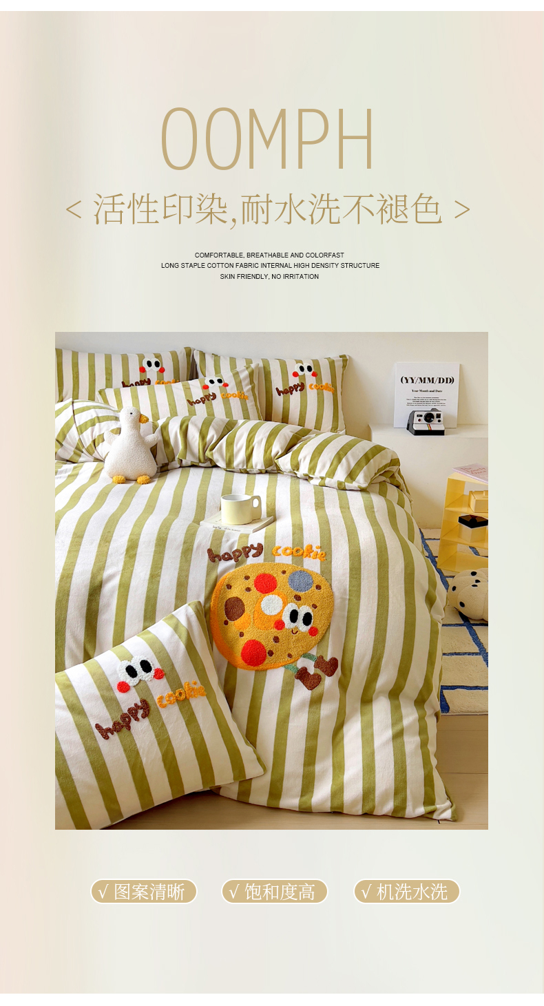 商品名称:丝羽坊 2024新款A类牛奶绒毛巾绣四件套-曲奇 曲奇-绿