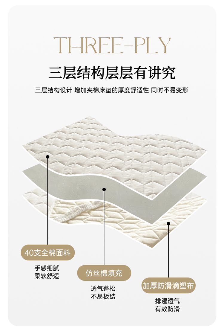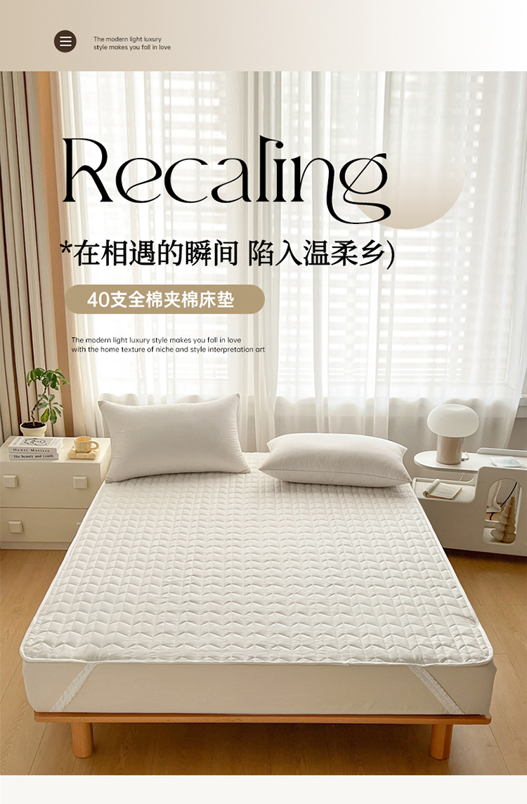 商品名称:2024新款40支全棉夹棉床垫 本白