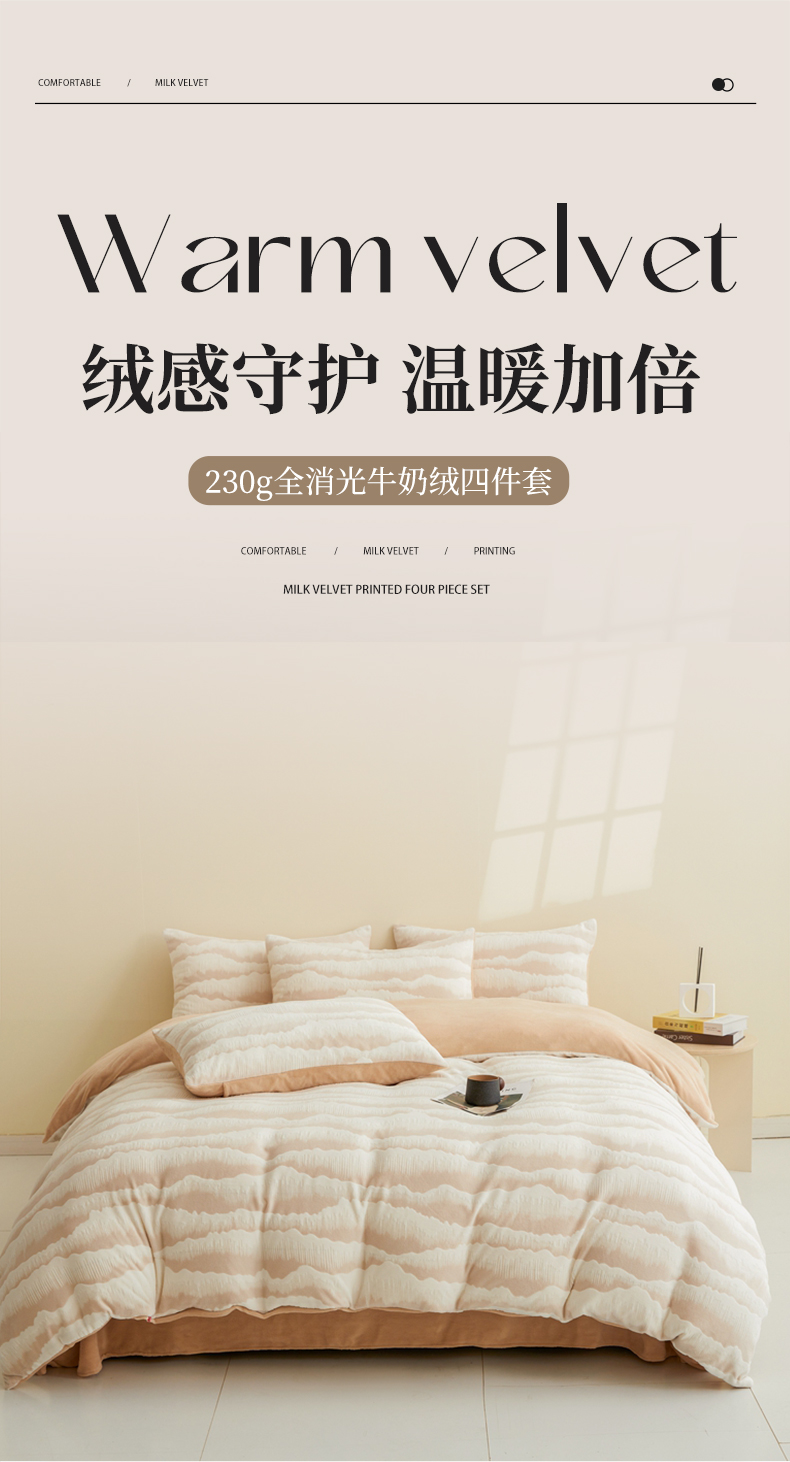 当前位置: 91家纺网 > 商品网购 > 床品套件 > 四件套 > 牛奶绒四件套 > 菡宝 2024新款雕花绒230g全消光牛奶绒四件套-行云流水 行云流水-米杏