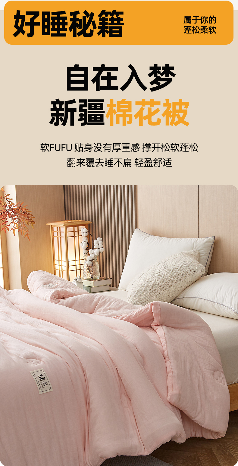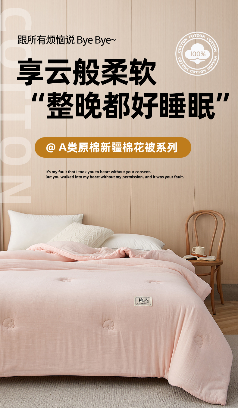 • 91家纺网 家纺一手货源 找家纺 猎鹿人家纺 2024新款A类原棉新疆棉花被春秋被冬被 荷花粉