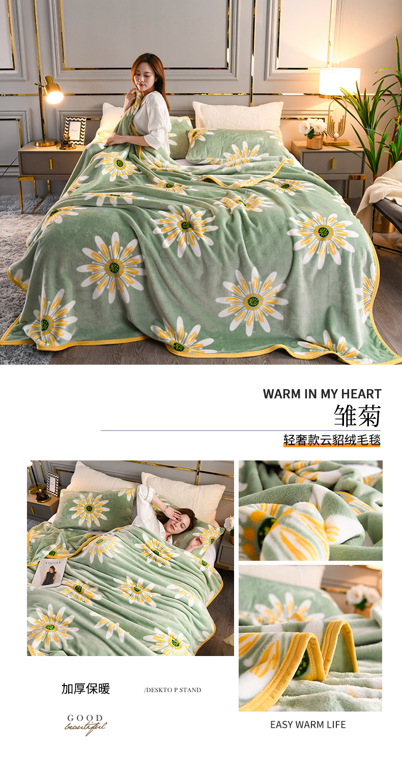 圣楚 2024新款300g加厚保暖云貂绒双面毯子办公室午睡毛毯直播 雏菊