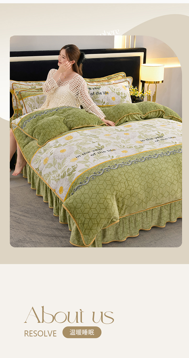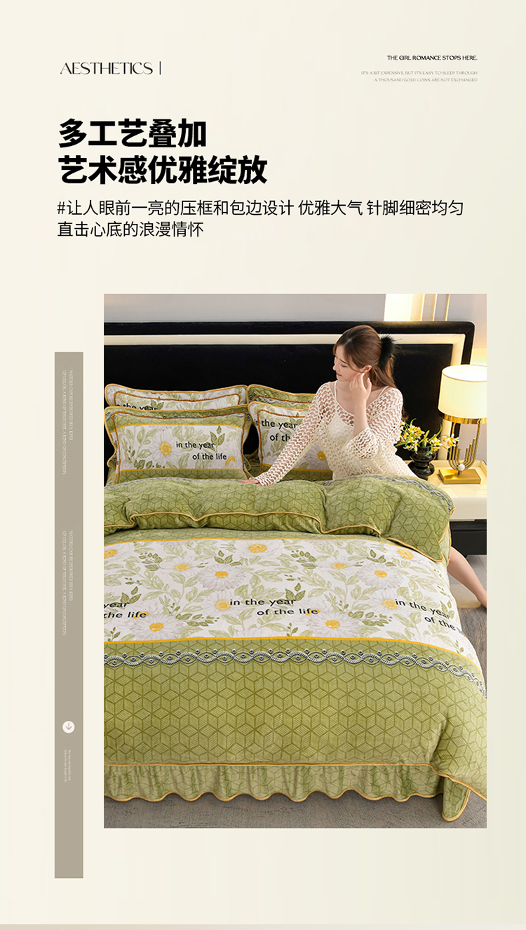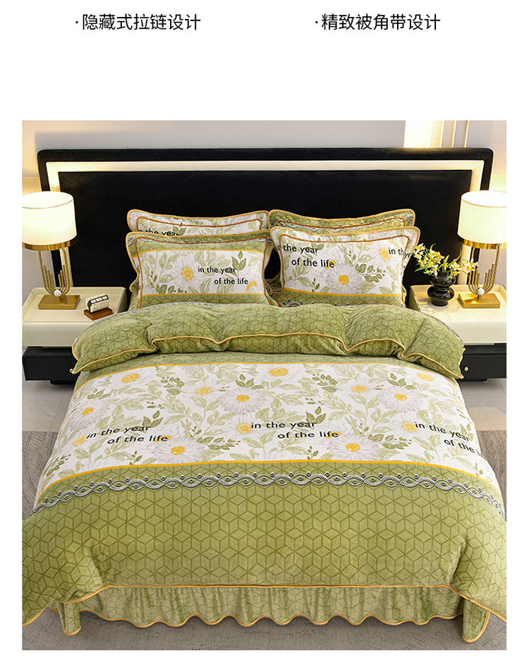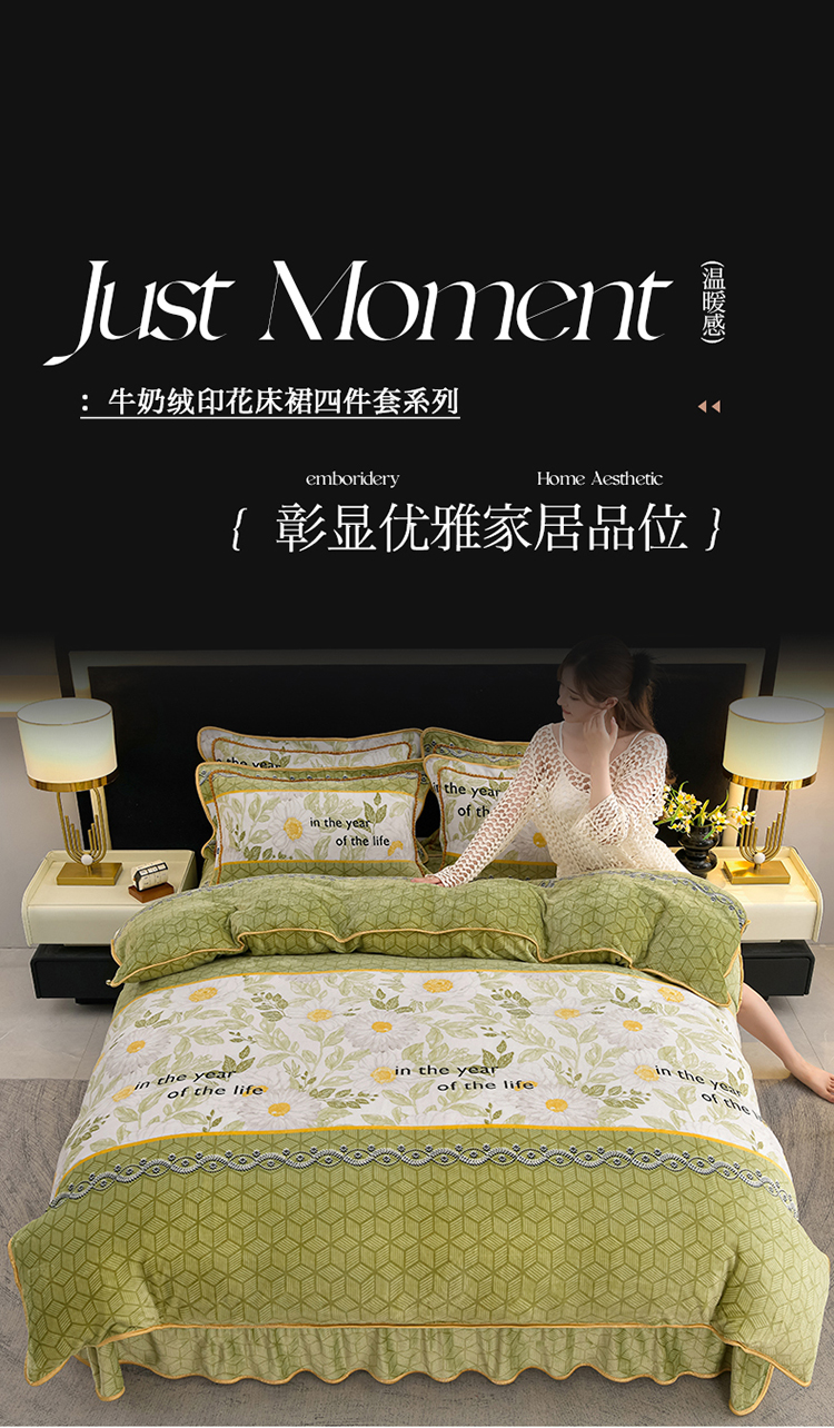 2025新款牛奶绒印花床裙四件套系列-四件套 春意盎然