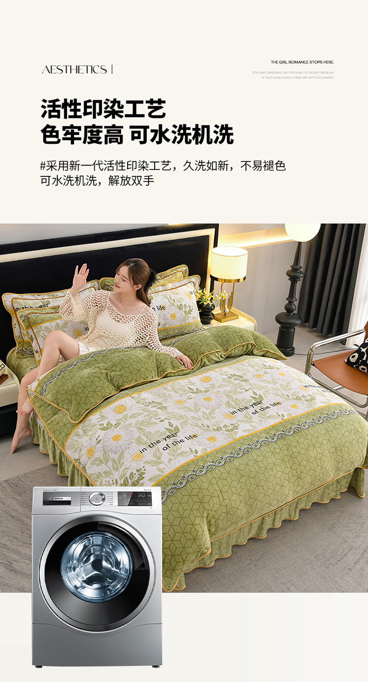 商品名称:2025新款牛奶绒印花床裙四件套系列-四件套 春意盎然