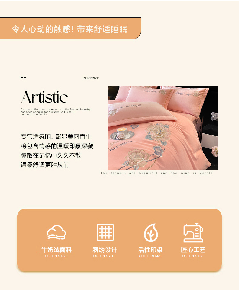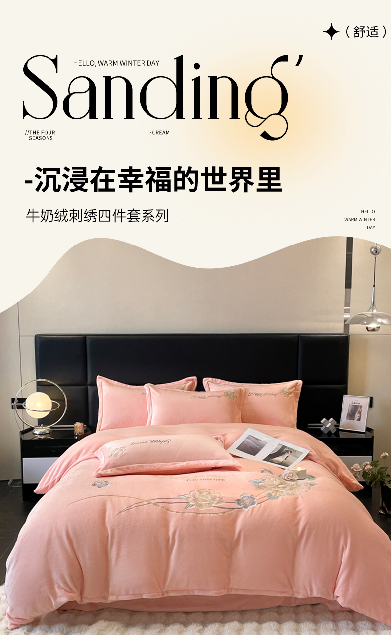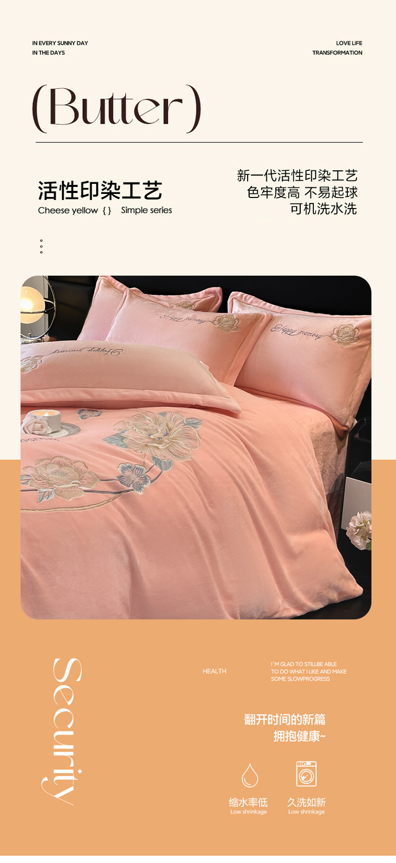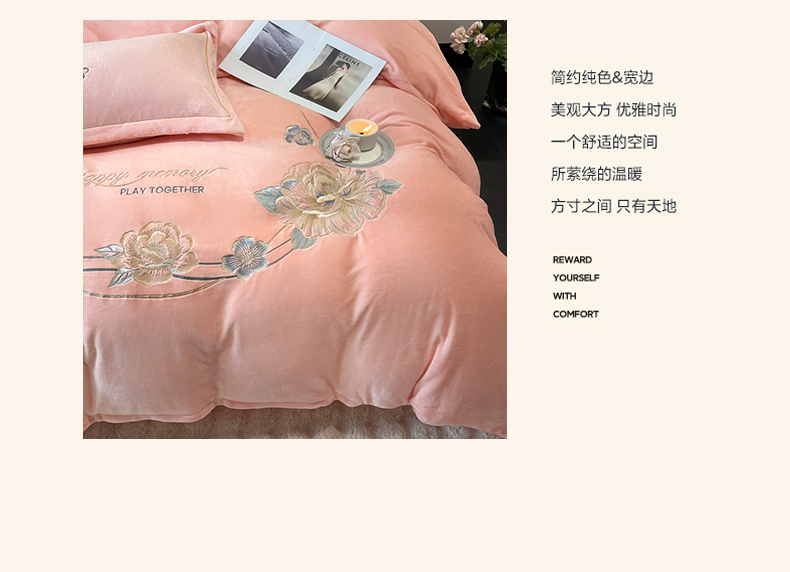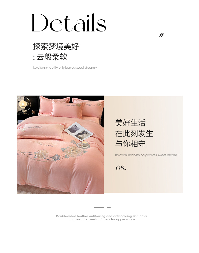 商品名称:畅畅家纺 2024秋冬新款牛奶绒绣花四件套 芳华-伊莉莎系列 芳华-浅粉