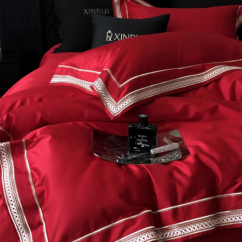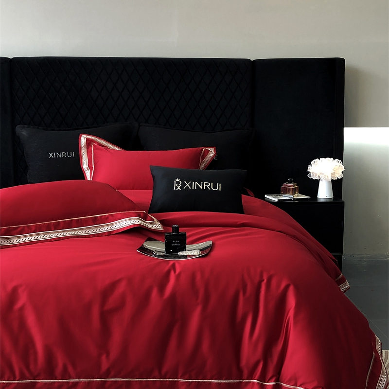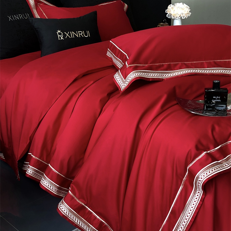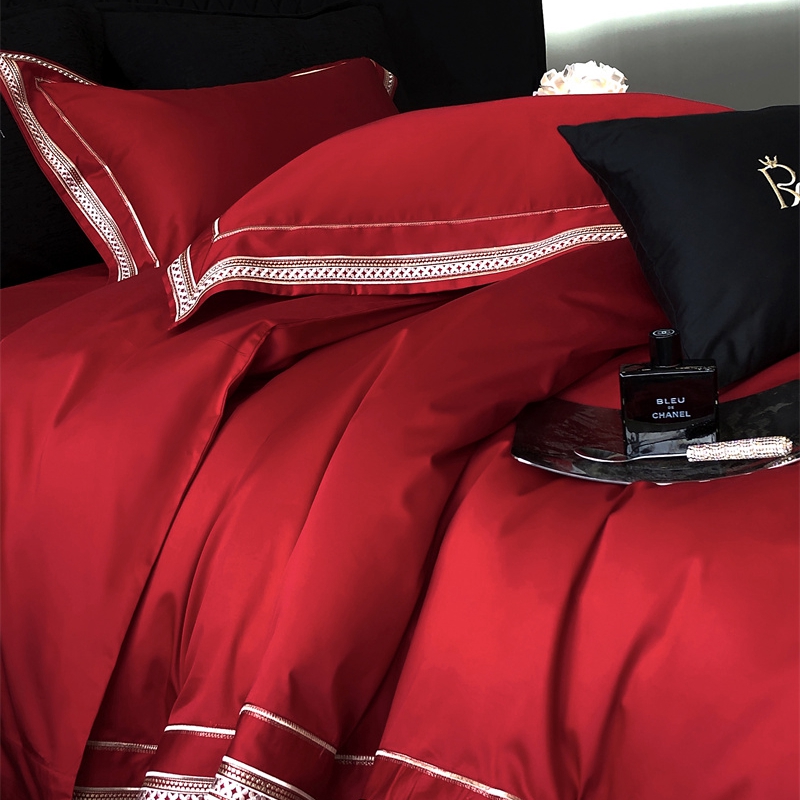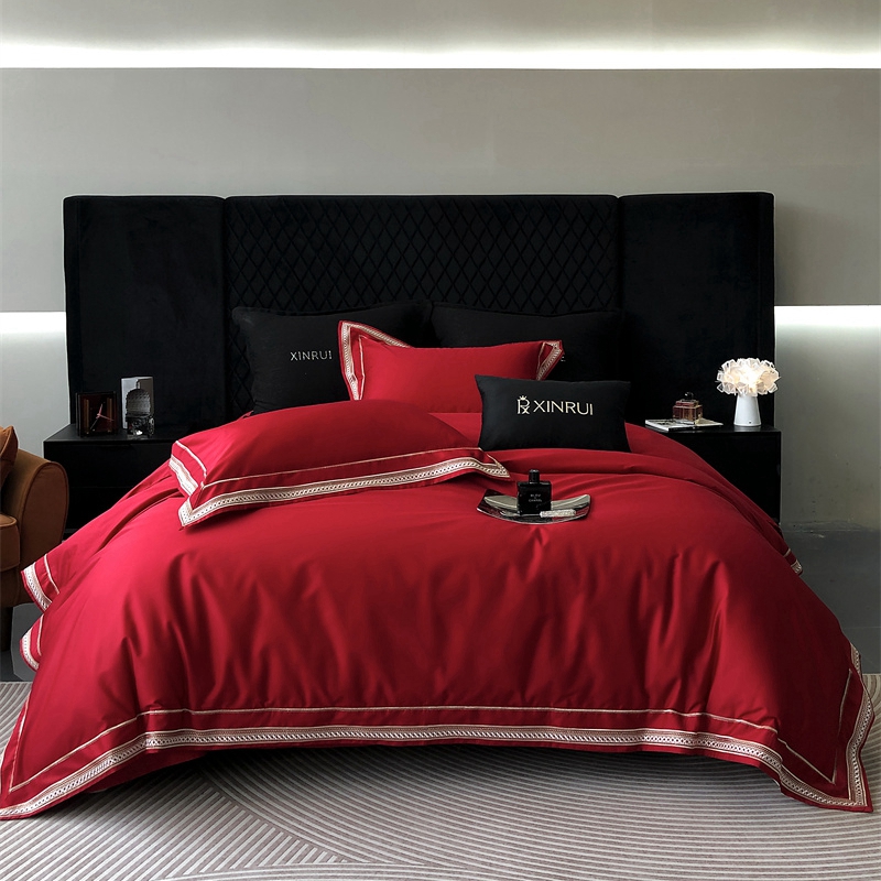 馨蕊 2024新款100S高奢简约长绒棉四件套-米诺 米诺-温莎红