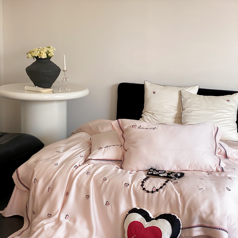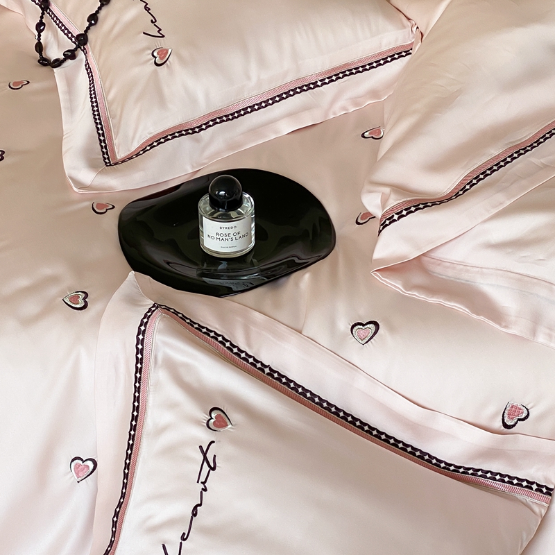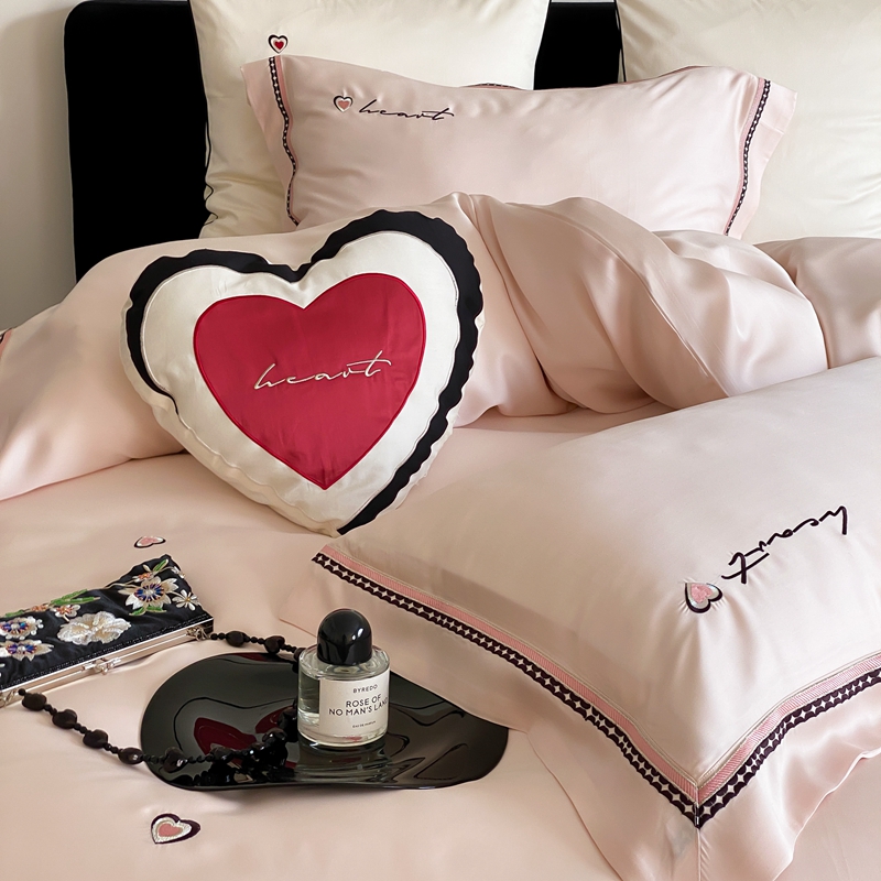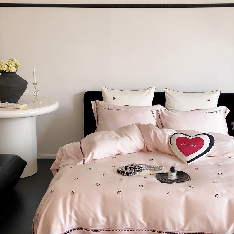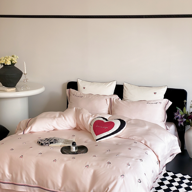 商品名称:馨蕊 2024新款100S高奢简约长绒棉四件套-棉小爱心 棉小爱心-初夏粉