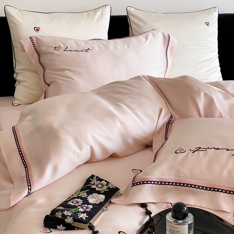 (总)馨蕊家居 2025新款春夏新品天丝印花80SLF奥地利兰精天丝四件套-告白,天丝告白-蔷薇粉,天丝告白-婉若紫