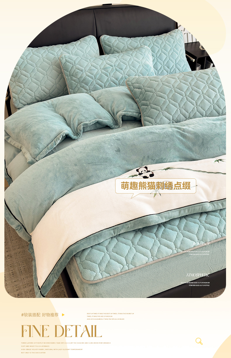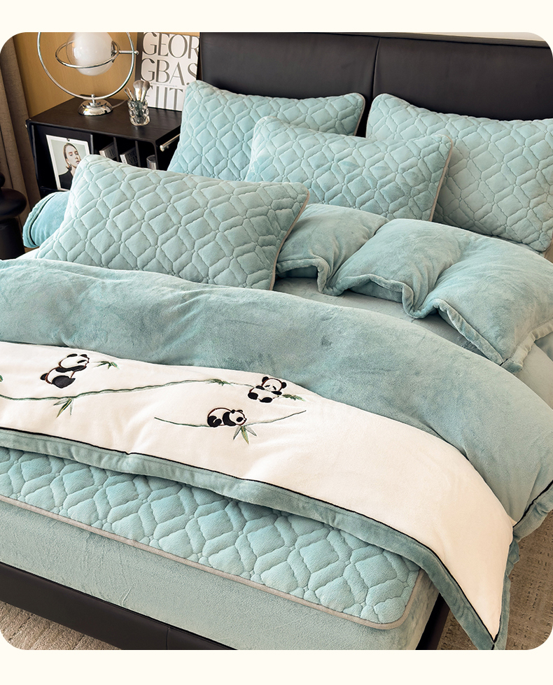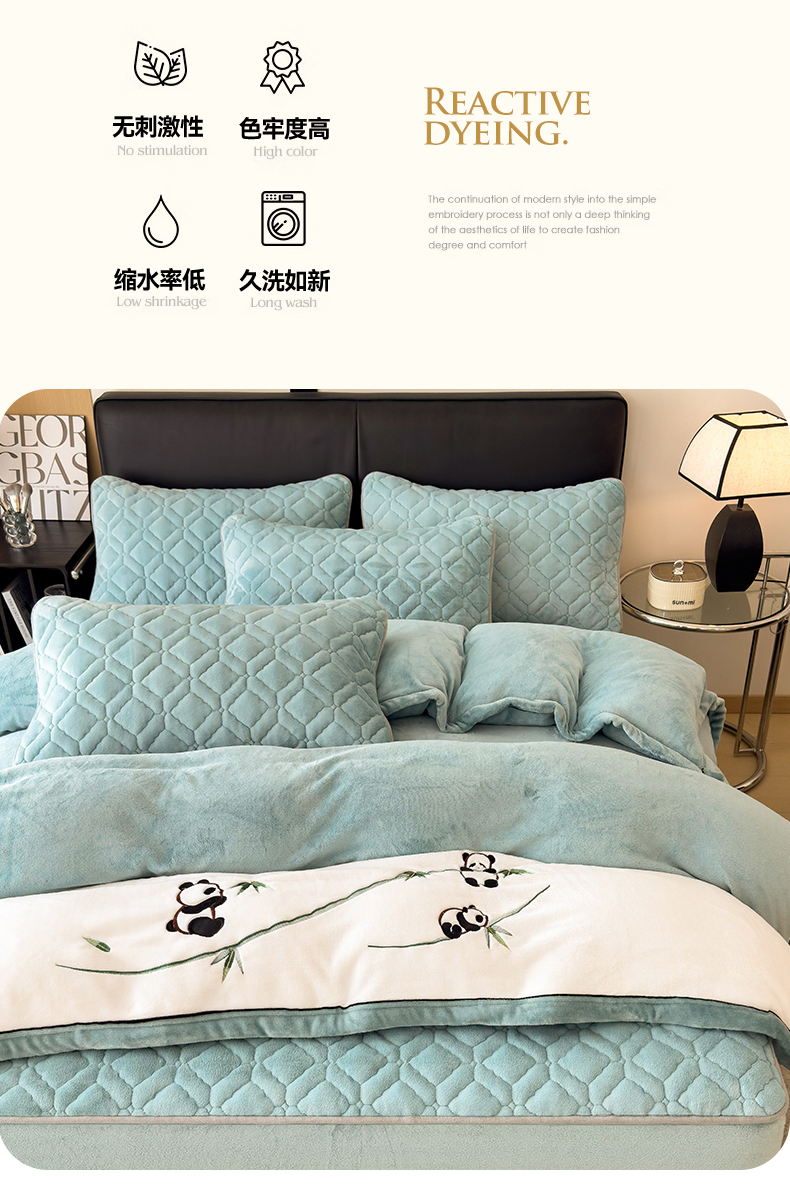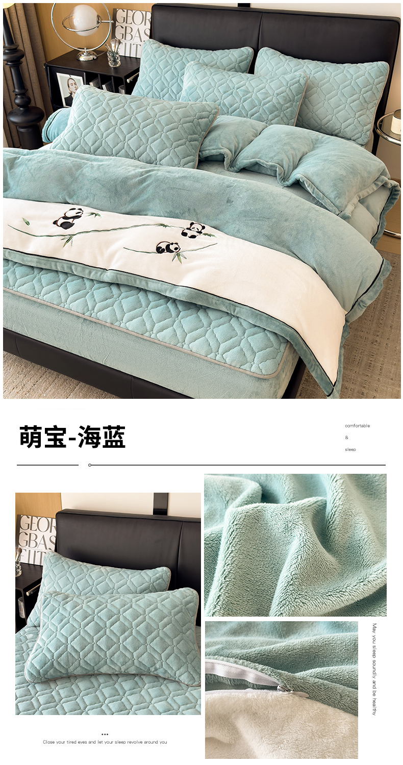 当前位置: 91家纺网 > 商品网购 > 床品套件 > 四件套 > 牛奶绒四件套 > 2024新款A类牛奶绒熊猫刺绣夹棉床笠款四件套 萌宝-海蓝