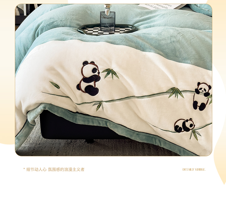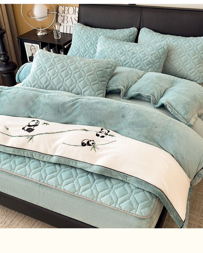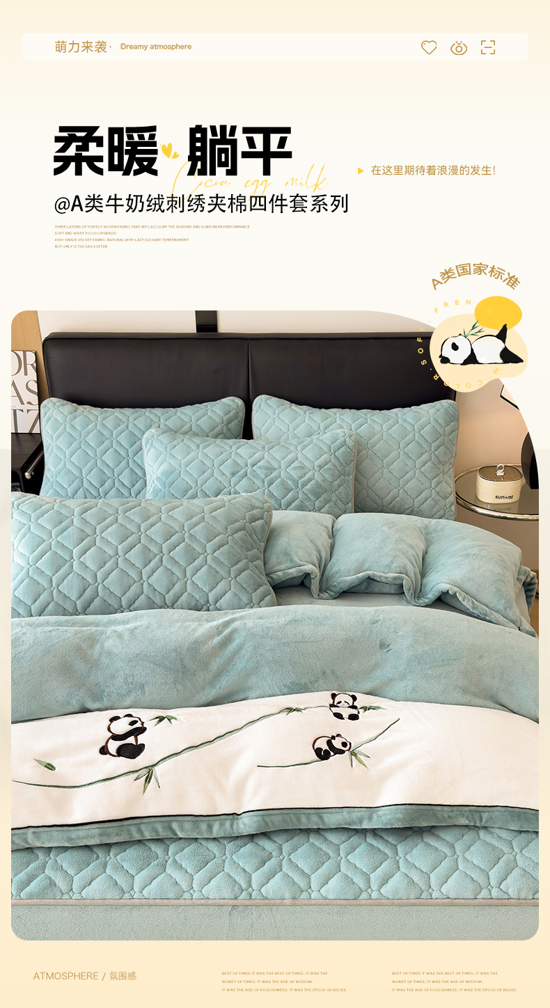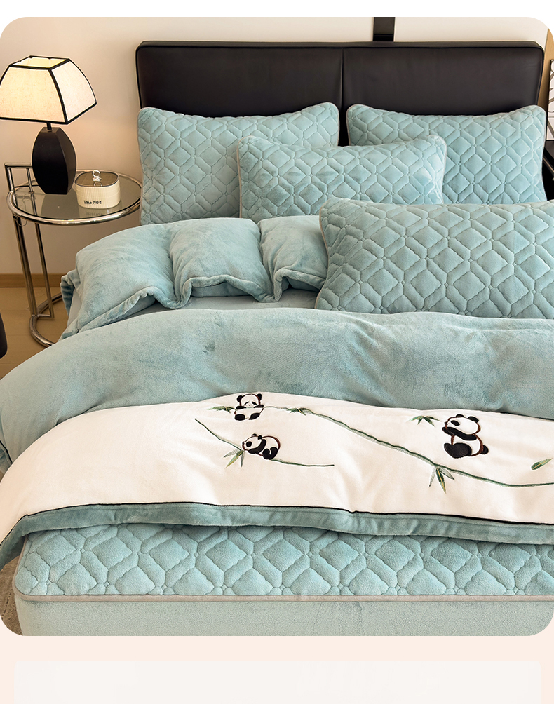 当前位置: 91家纺网 > 商品网购 > 床品套件 > 四件套 > 牛奶绒四件套 > 2024新款A类牛奶绒熊猫刺绣夹棉床笠款四件套 萌宝-海蓝
