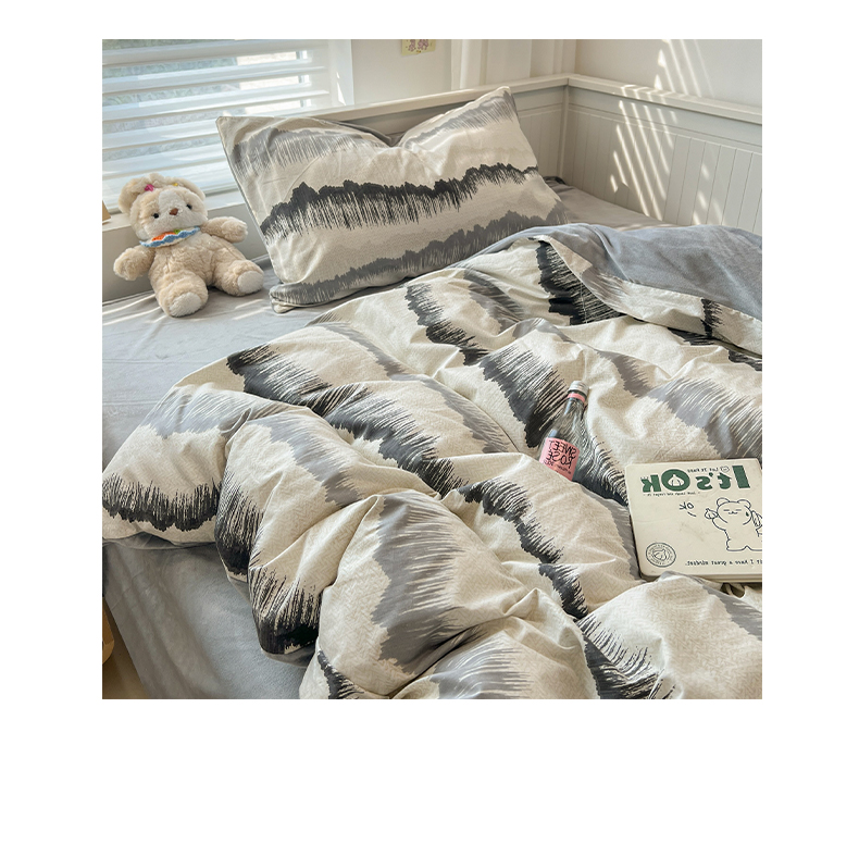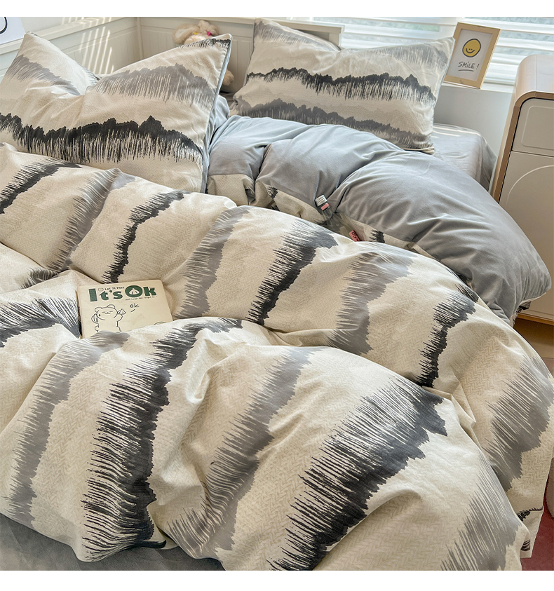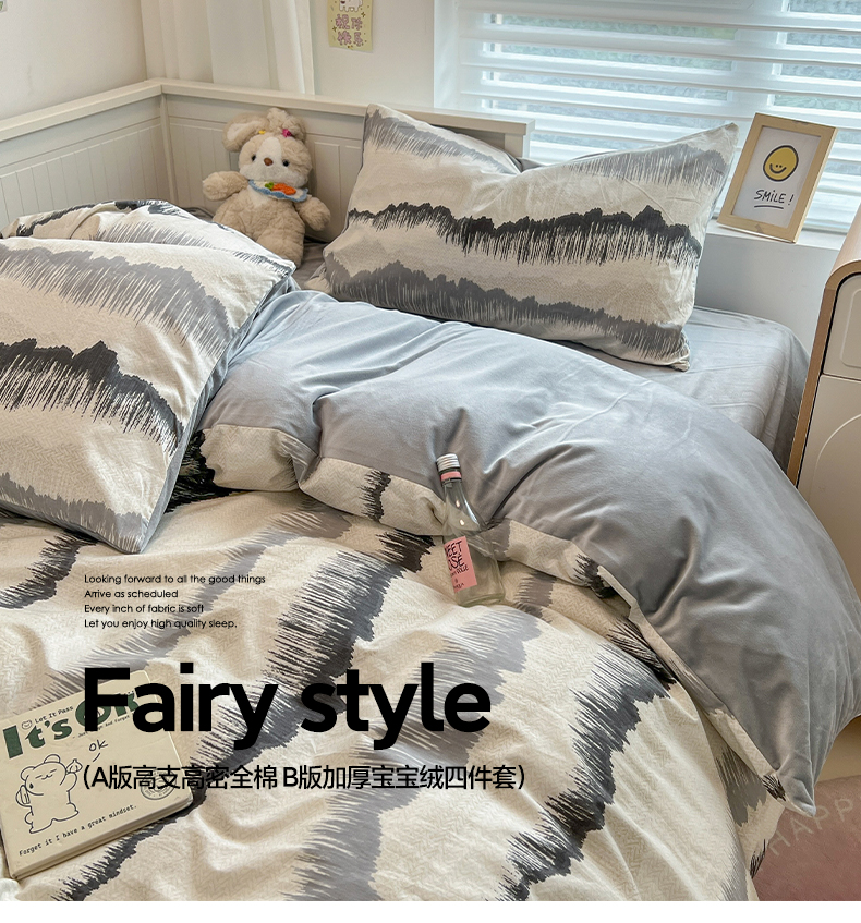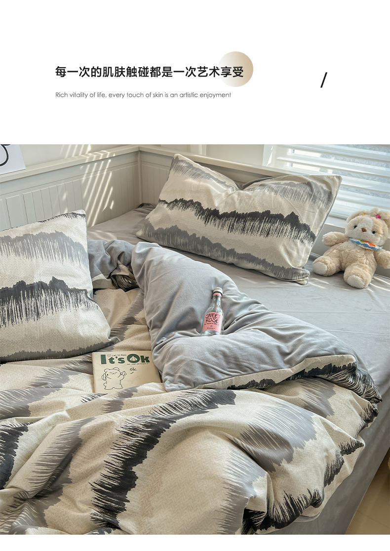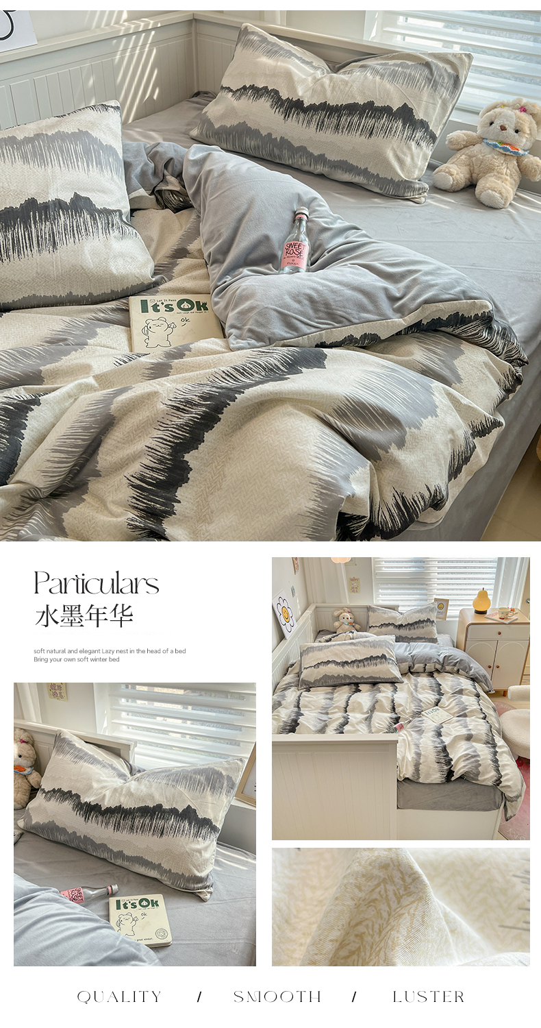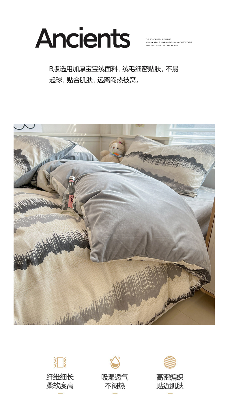 盛馨家纺 2024秋冬棉加绒13372全棉宝宝绒牛奶绒床单床笠保暖绒四件套 水墨年华