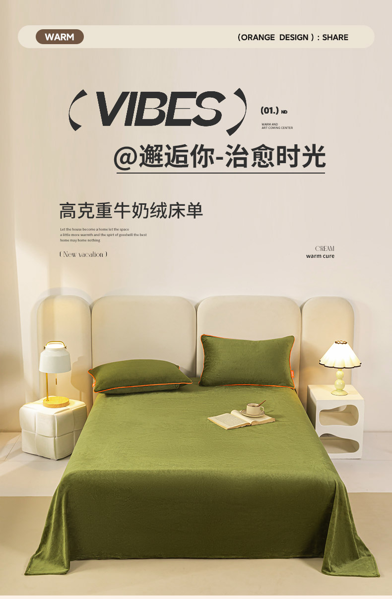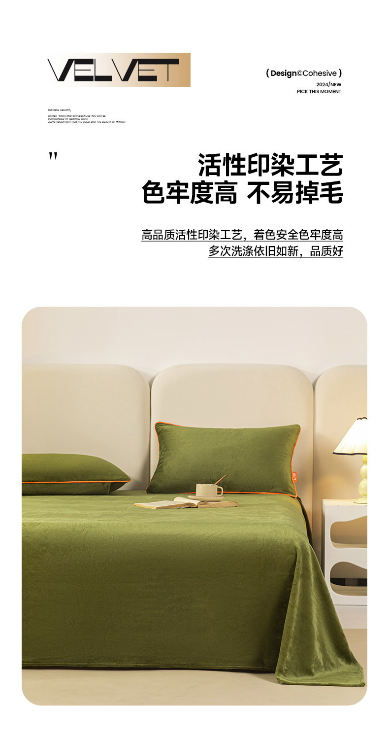 吾诺家居 2024新款浅爱牛奶绒单品系列-单床单 橄榄绿