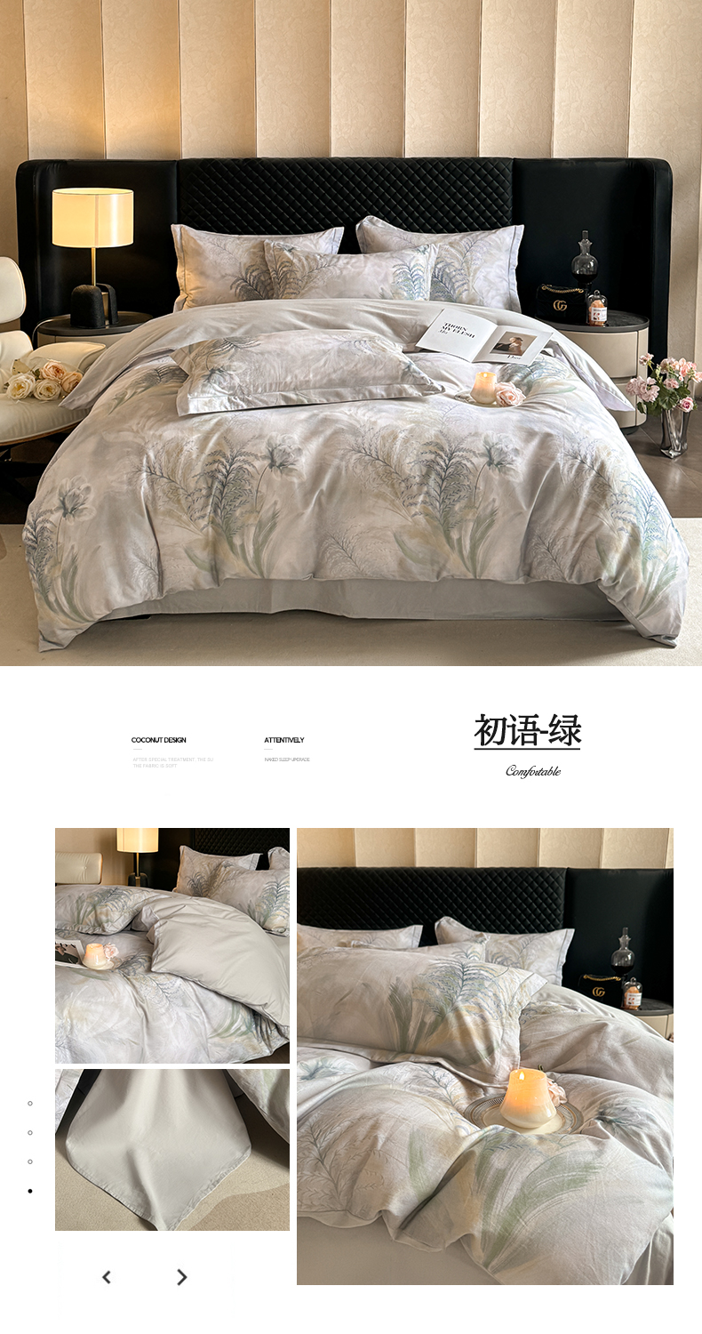涵宸家纺 2024新款全棉磨毛数码印花四件套 初语-绿