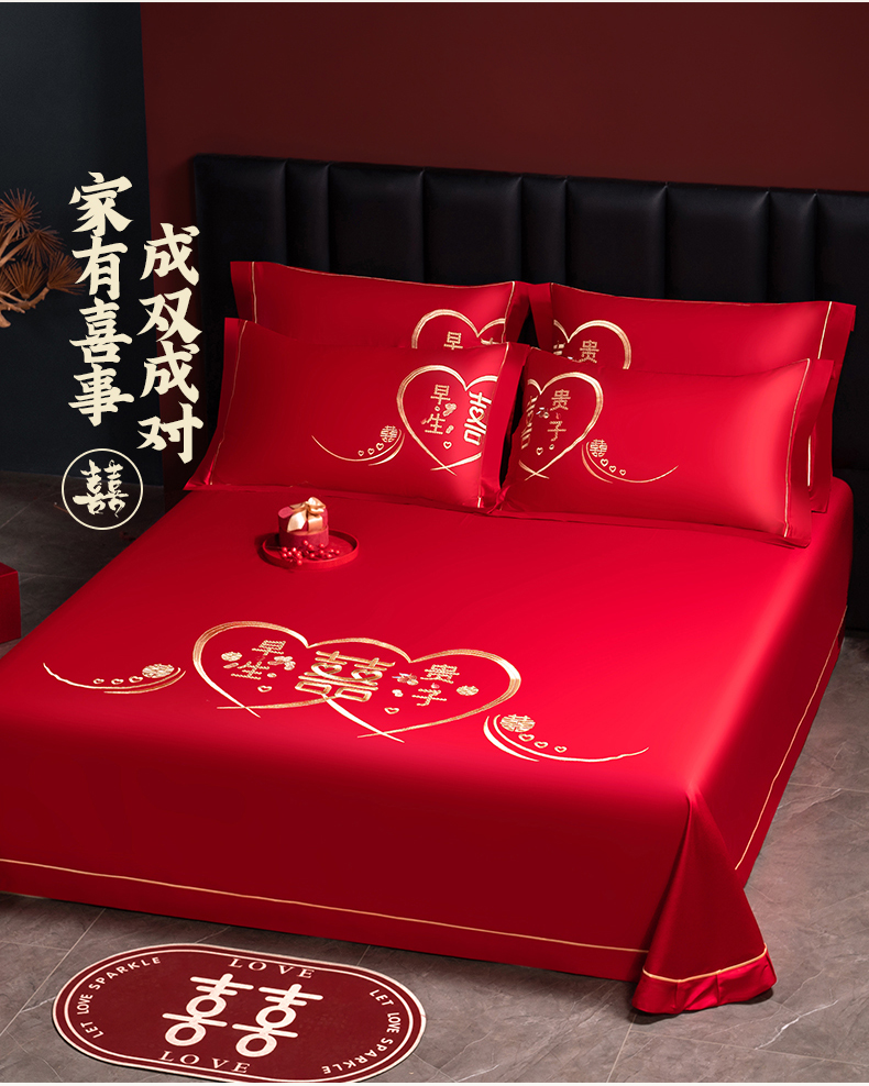 (总)千禧家纺 2024新款双面长绒棉磨毛加厚保暖绣花婚庆套件,大喜大吉,鸿运贺禧,欢乐喜事,欢喜,美满爱情,喜上眉梢,喜约,相伴一生,挚爱