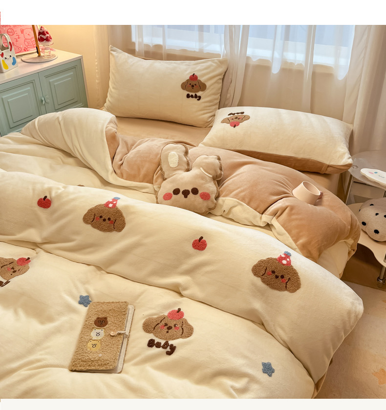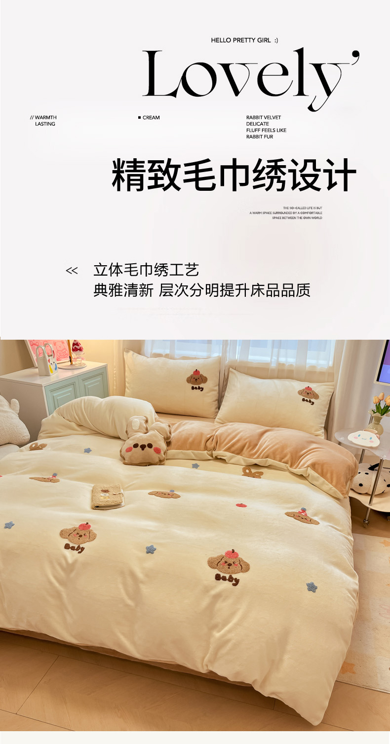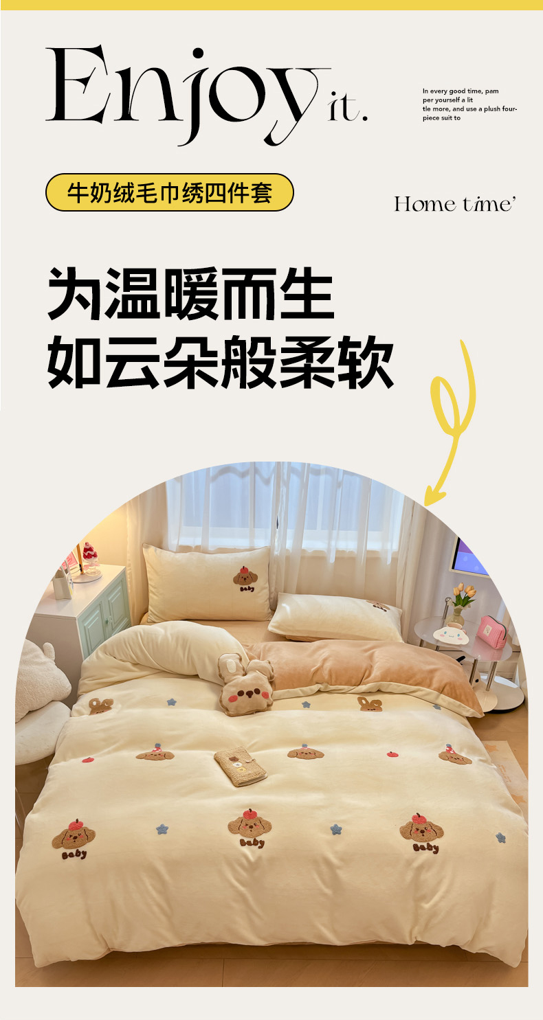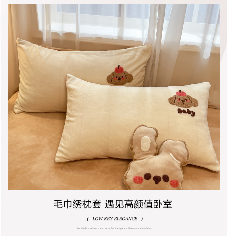 当前位置: 91家纺网 > 商品网购 > 床品套件 > 四件套 > 牛奶绒四件套 > 慕尚家纺 2025新款牛奶绒毛巾绣刺绣四件套 球球 咖