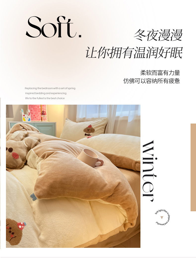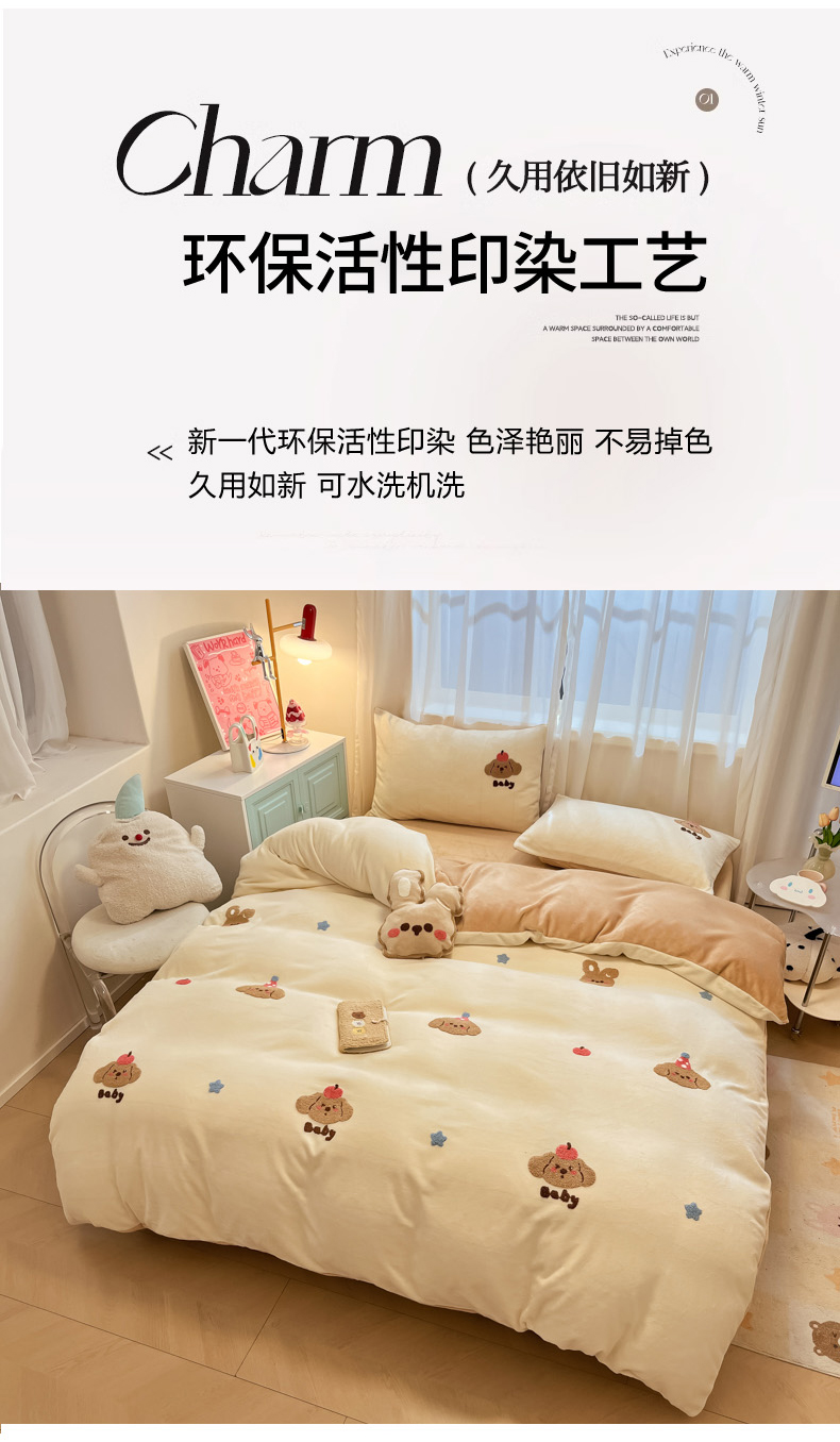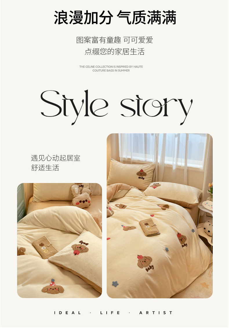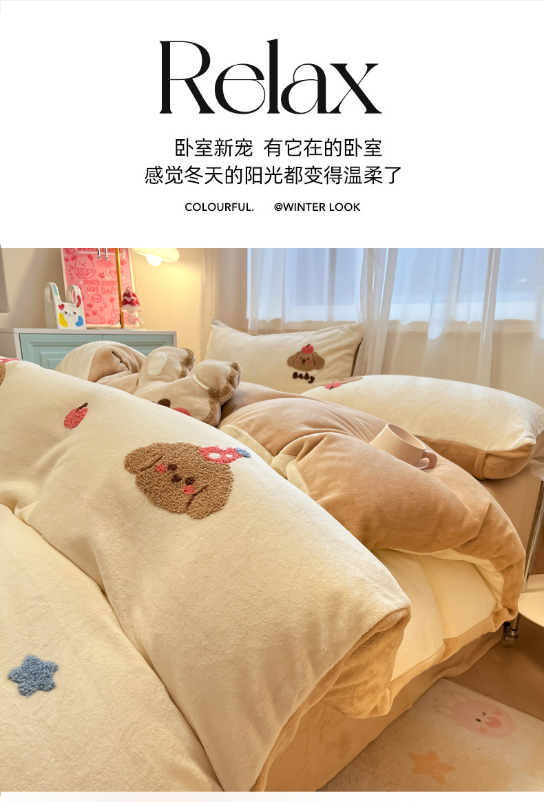 当前位置: 91家纺网 > 商品网购 > 床品套件 > 四件套 > 牛奶绒四件套 > 慕尚家纺 2025新款牛奶绒毛巾绣刺绣四件套 球球 咖