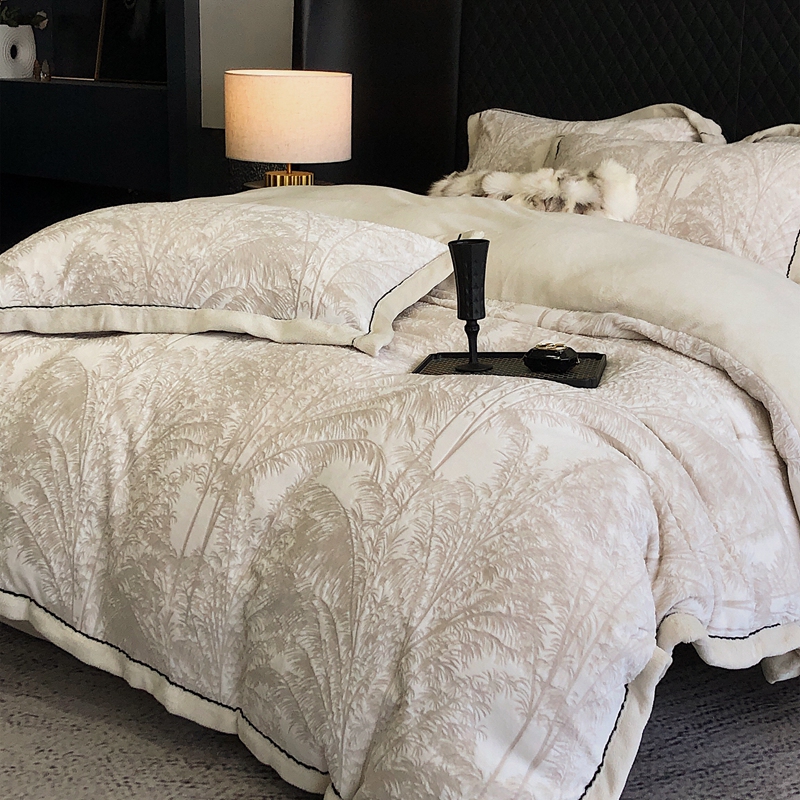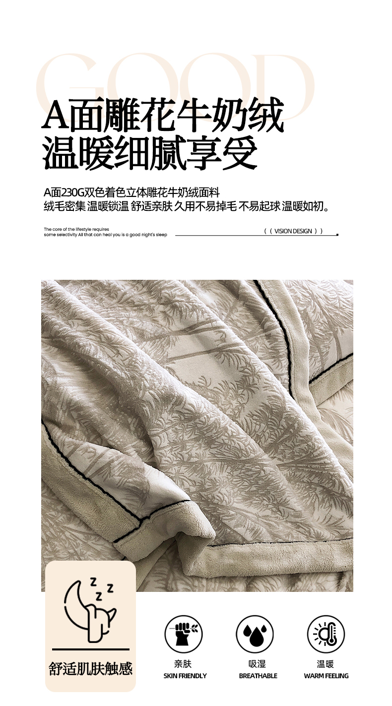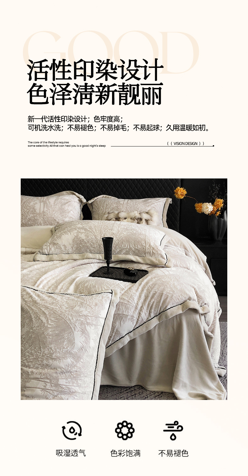 漫调家纺 2024新款轻奢立体着色雕花绒牛奶绒四件套 挪威森林
