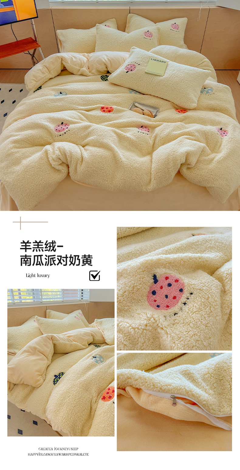 当前位置: 91家纺网 > 商品网购 > 床品套件 > 四件套 > 牛奶绒四件套 > 晨曦家纺 2024新款加厚羊羔绒牛奶绒毛巾绣四件套 羊羔绒-南瓜派对天蓝