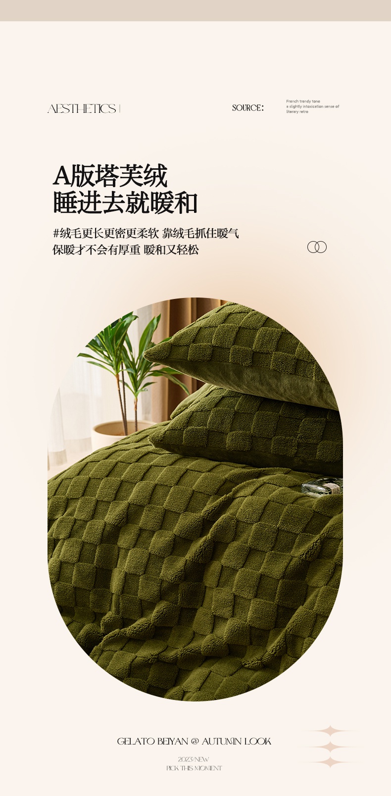 当前位置: 91家纺网 > 商品网购 > 床品套件 > 四件套 > 牛奶绒四件套 > 晨曦家纺 2024新款塔芙绒牛奶绒四件套-初暖系列 初暖-茶绿