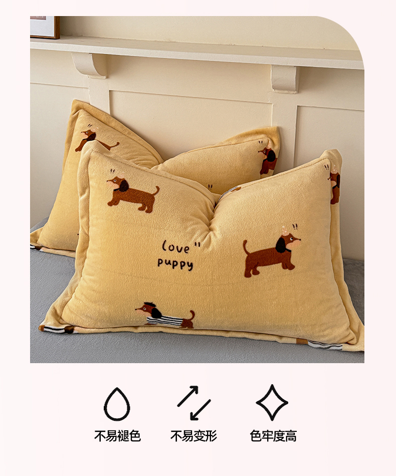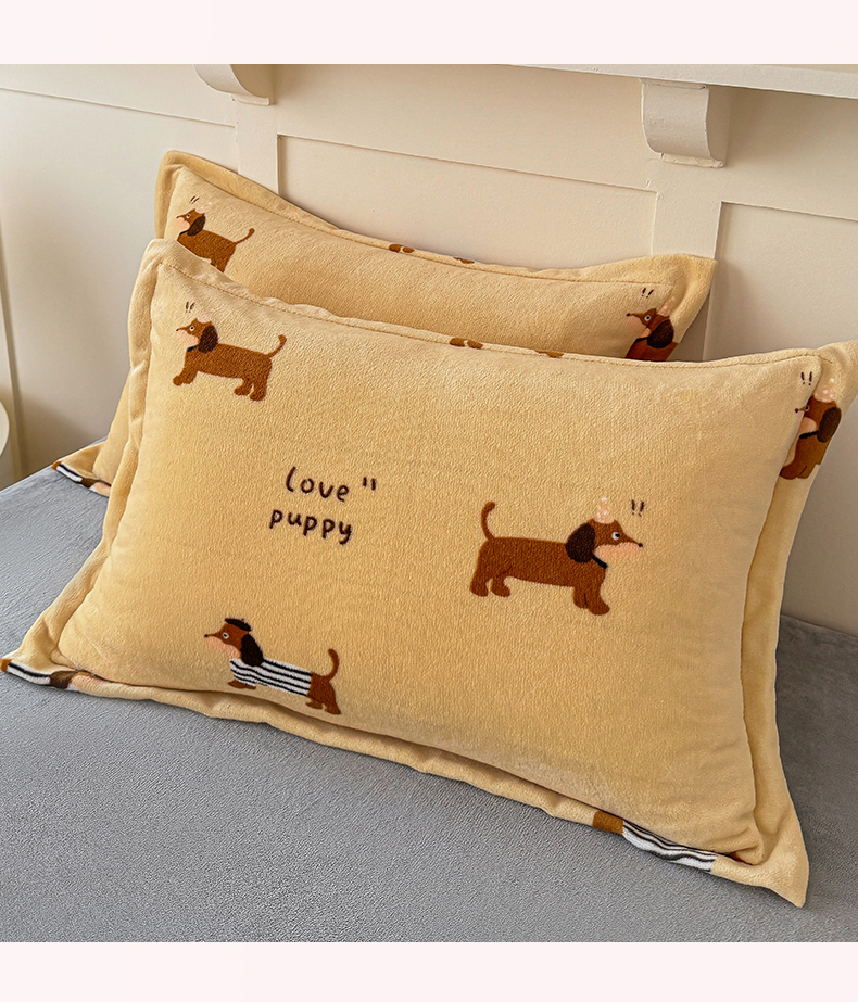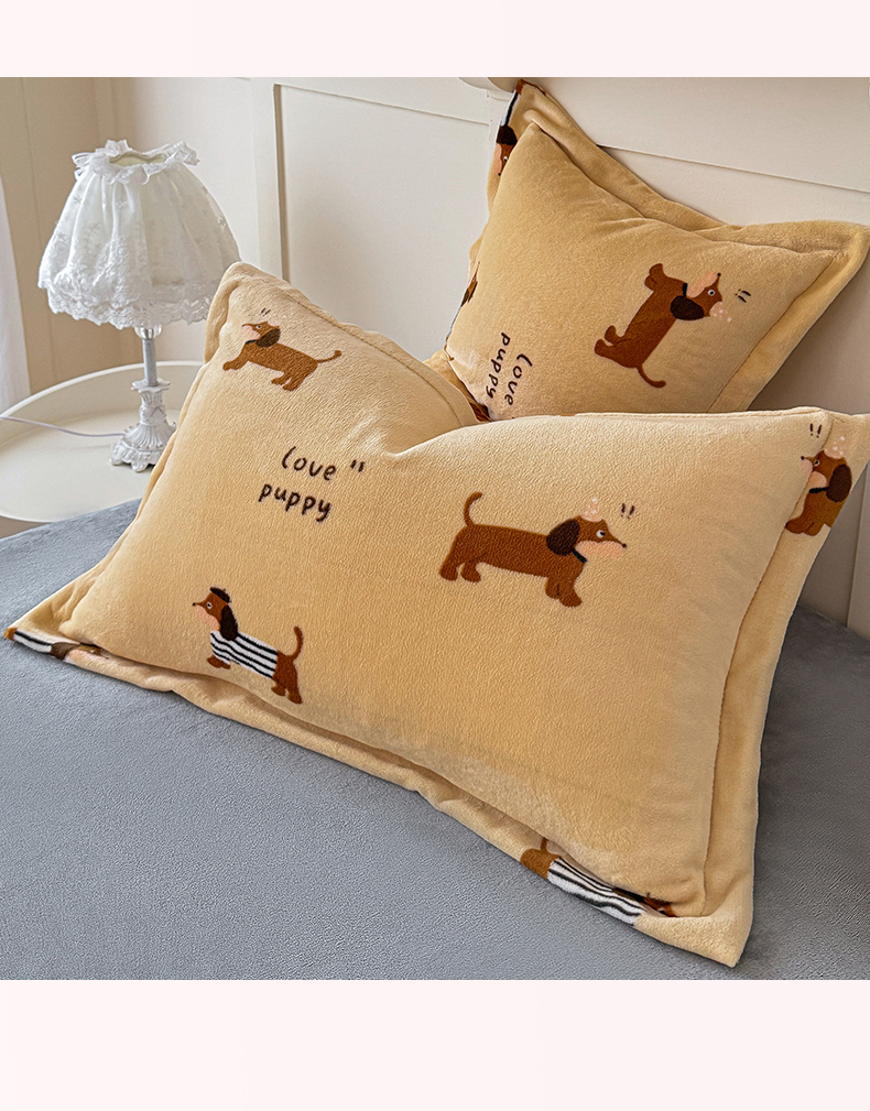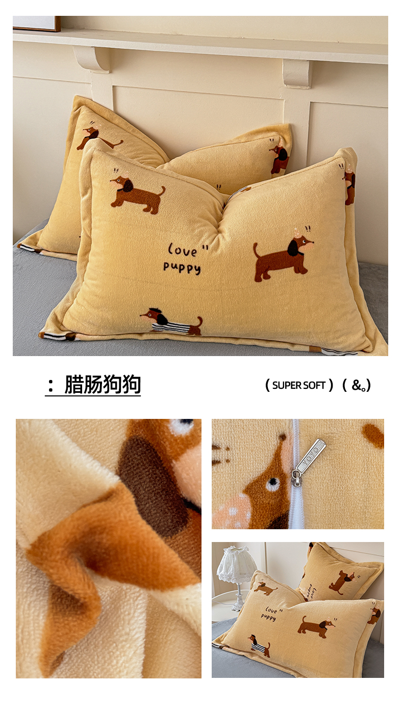 妖妖家纺 2024新款200克牛奶绒单枕套 腊肠狗狗