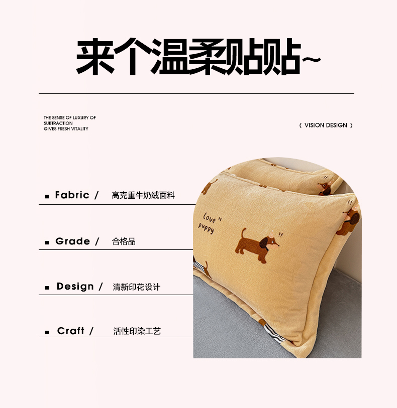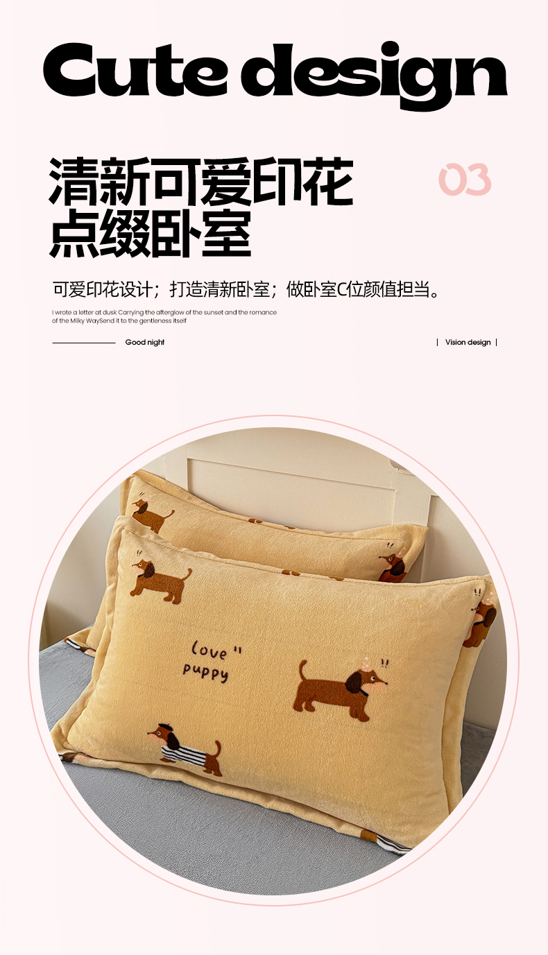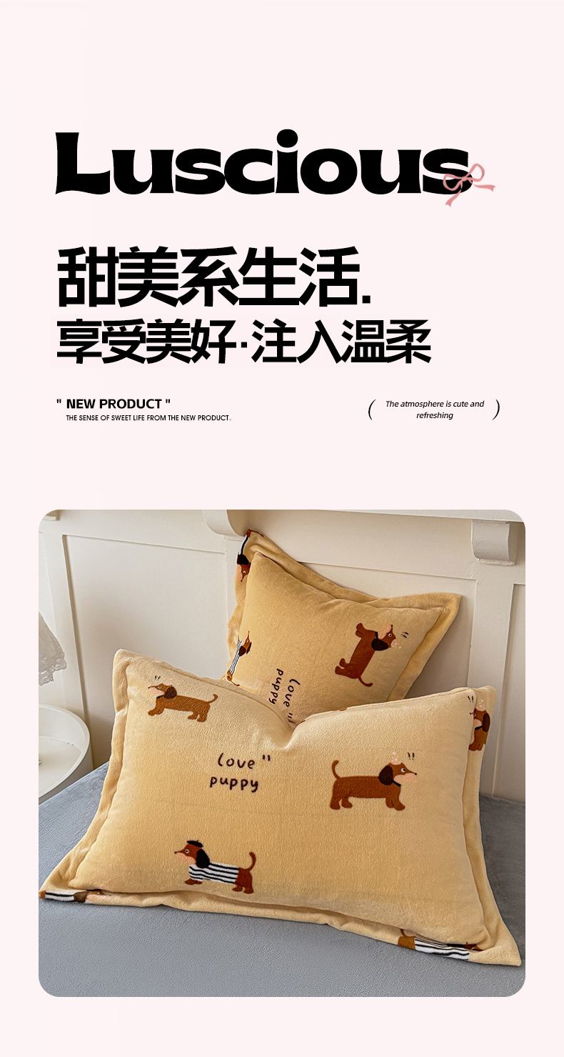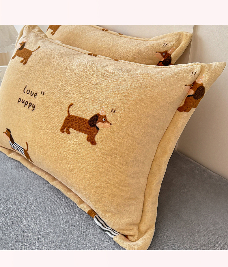 妖妖家纺 2024新款200克牛奶绒单枕套 腊肠狗狗
