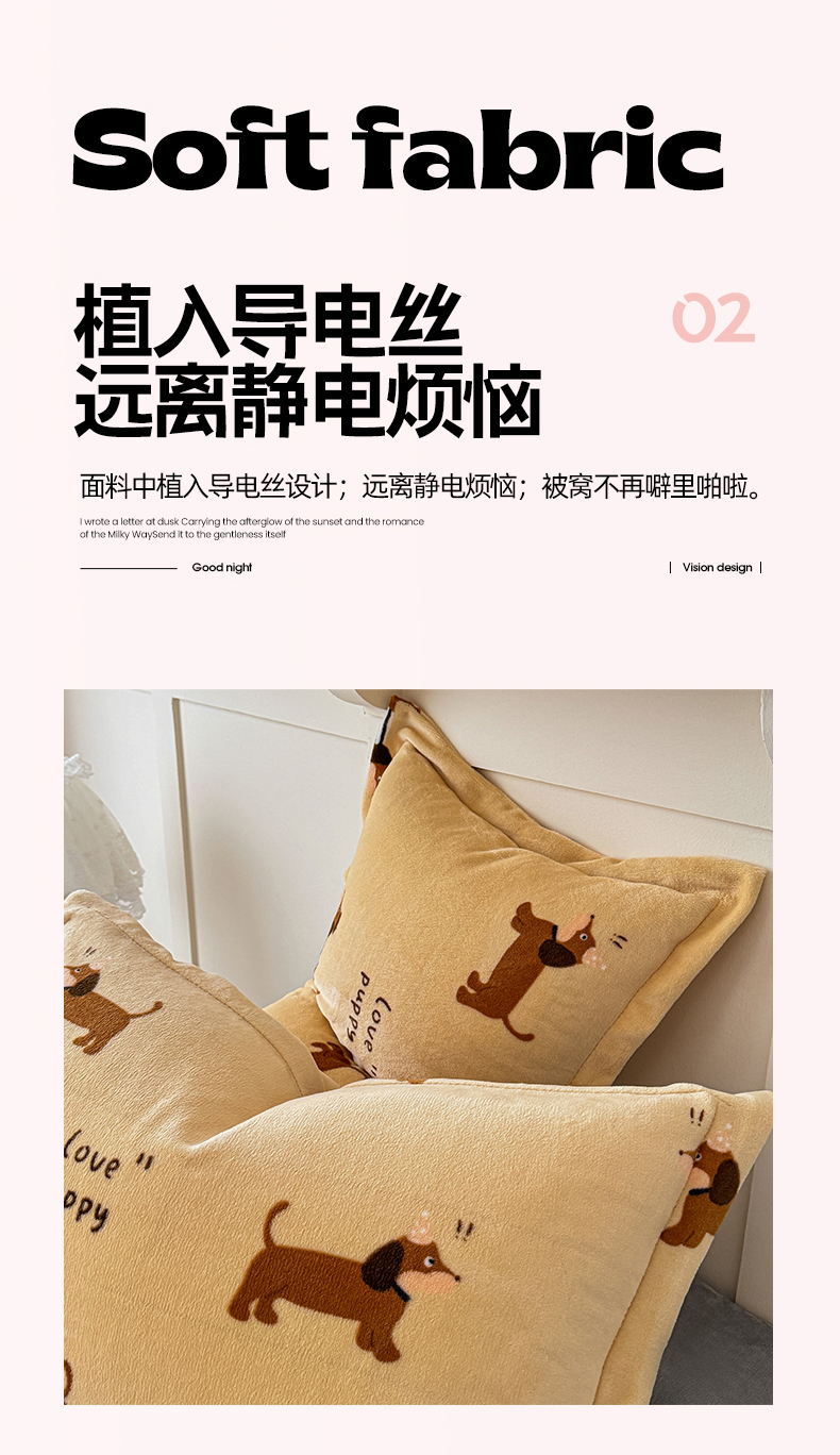 商品名称:妖妖家纺 2024新款200克牛奶绒单枕套 腊肠狗狗