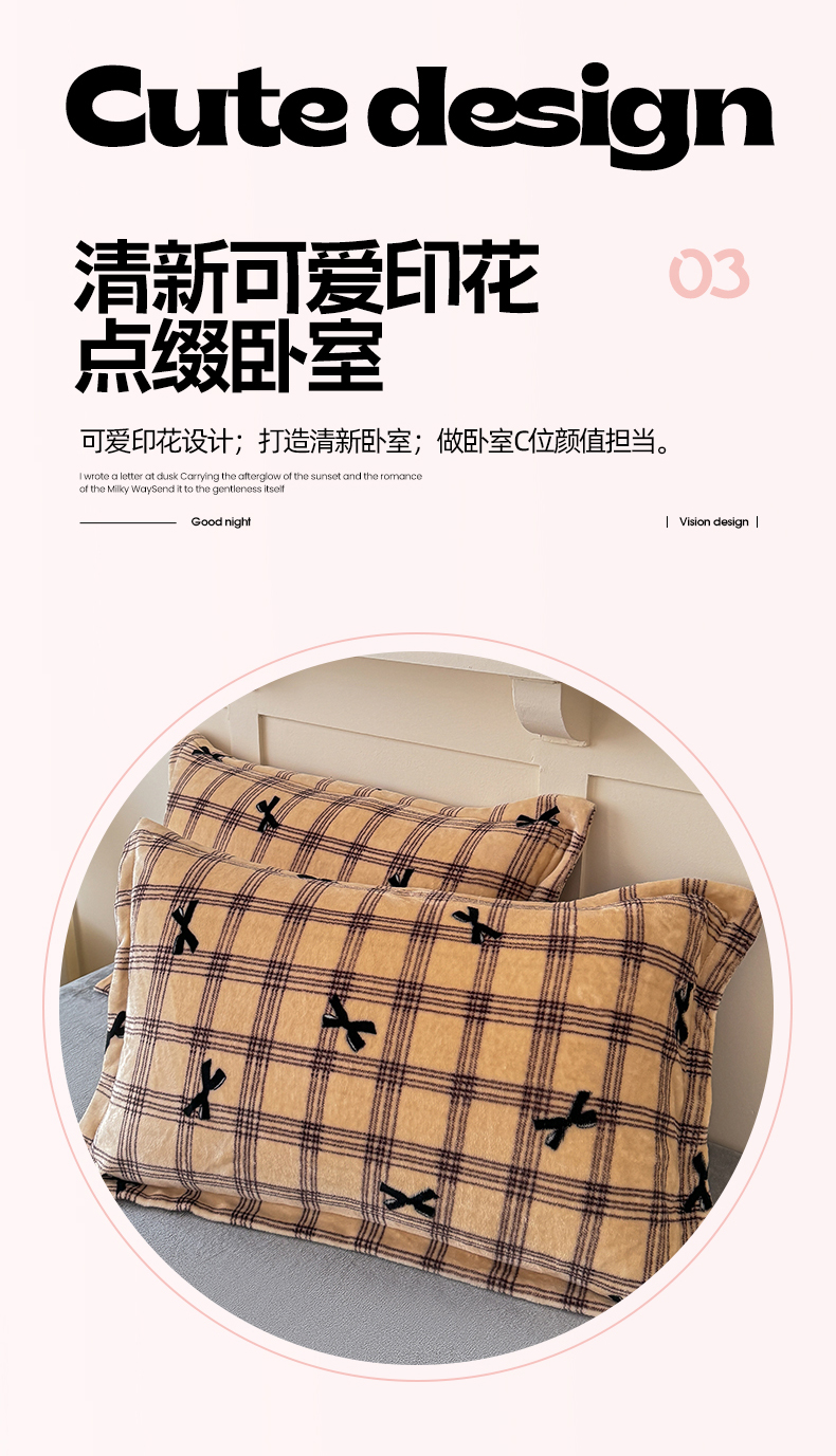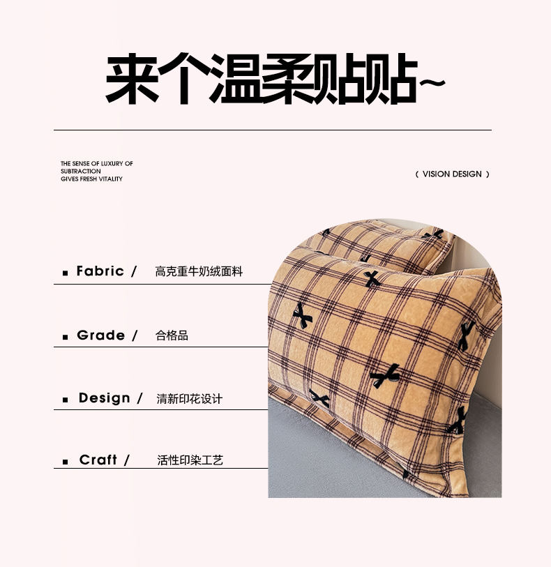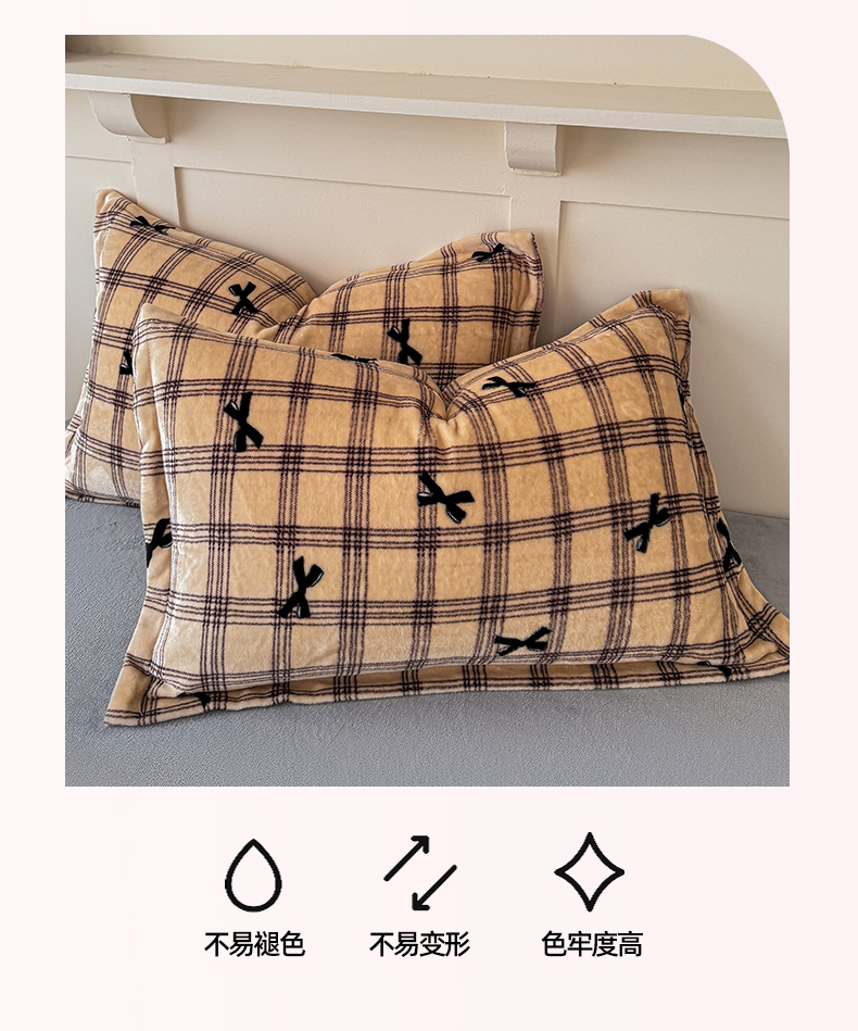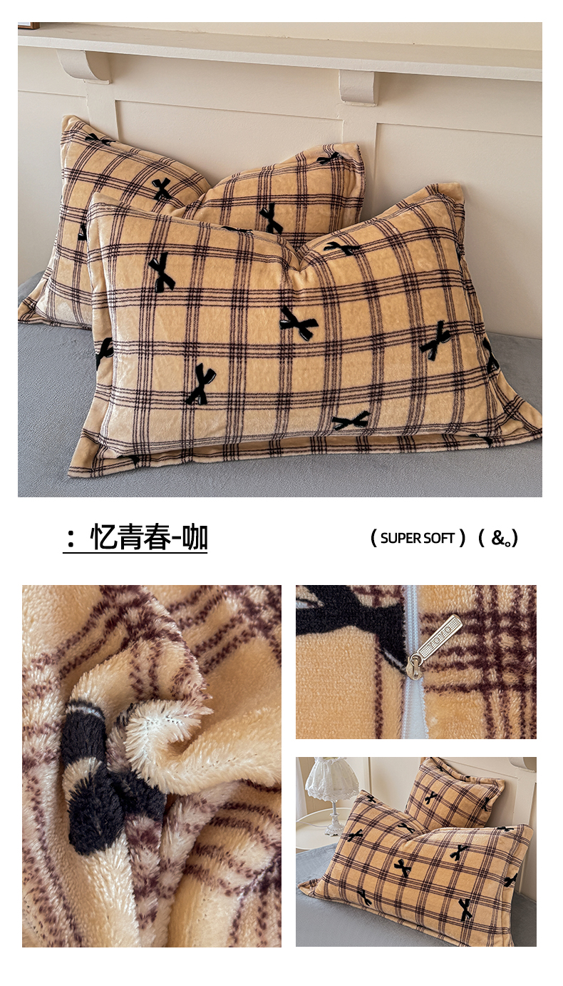 商品名称:妖妖家纺 2024新款200克牛奶绒单枕套 忆青春-咖