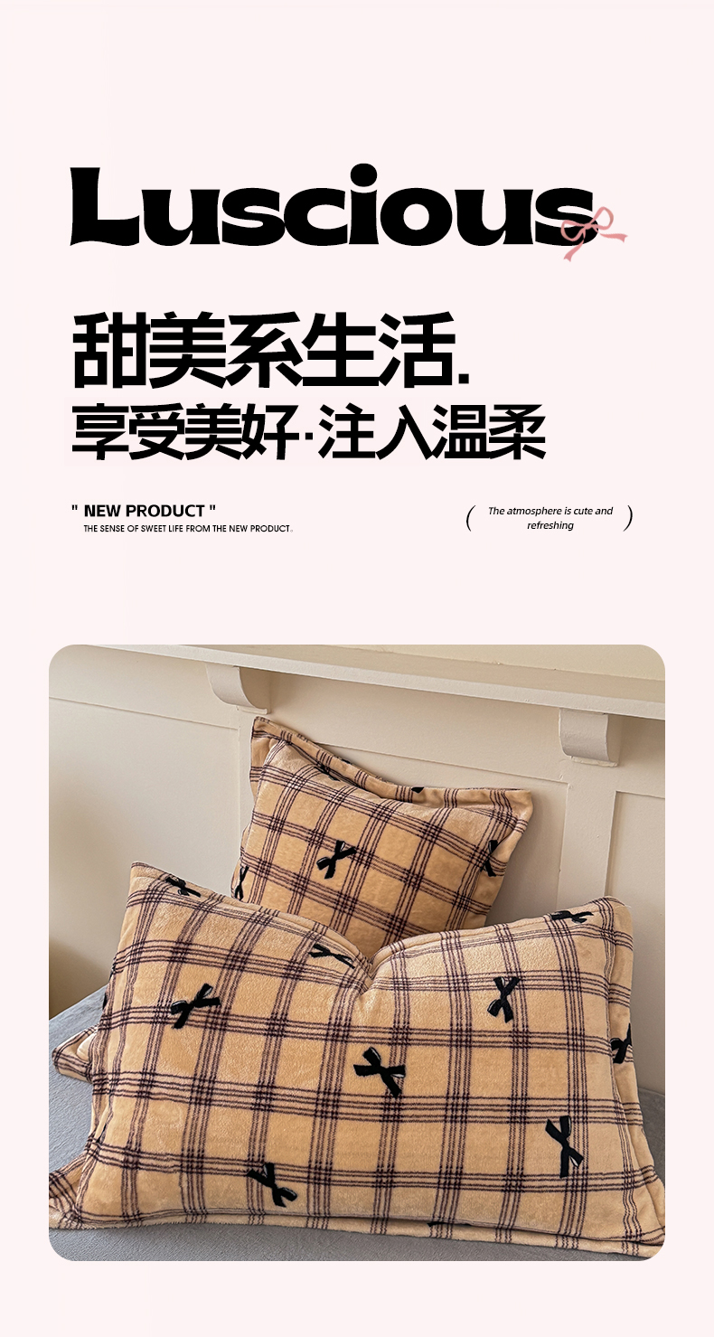妖妖家纺 2024新款200克牛奶绒单枕套 忆青春-咖