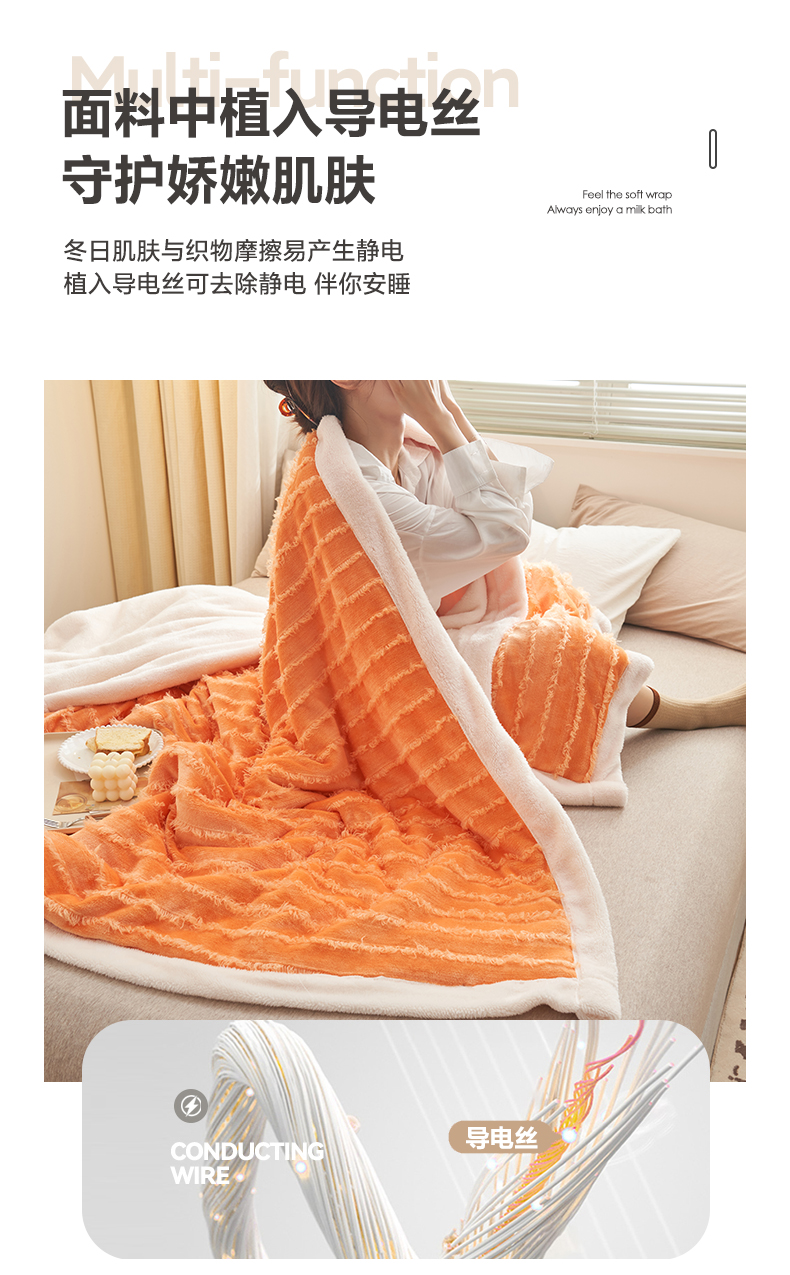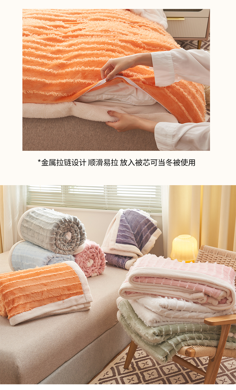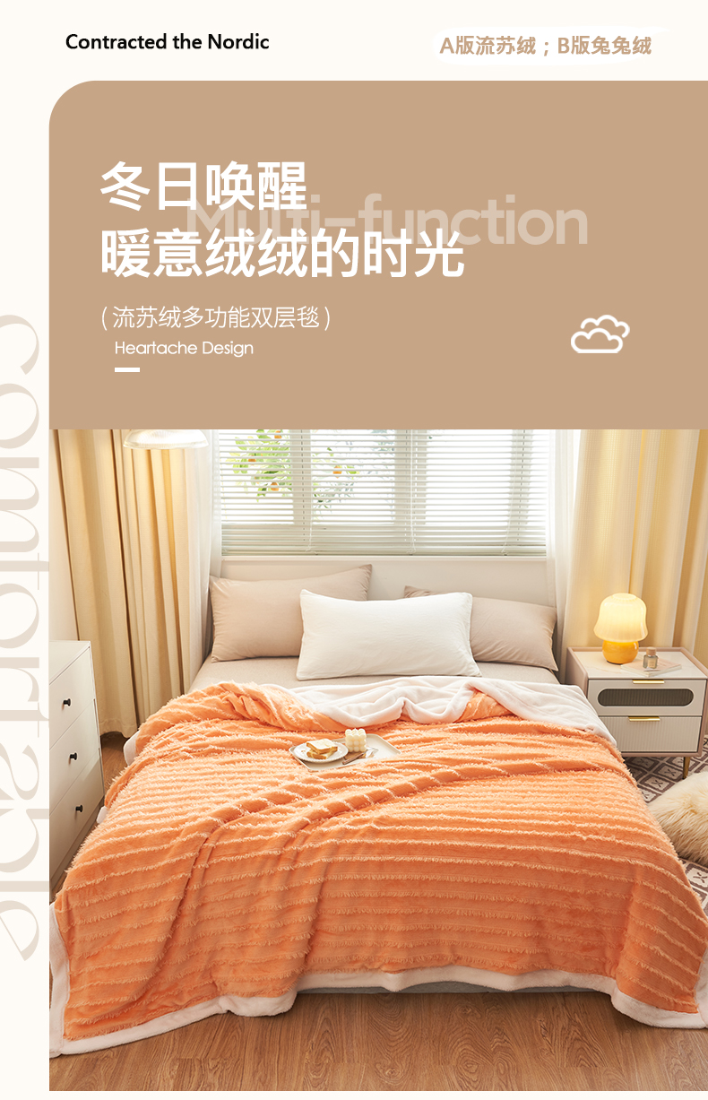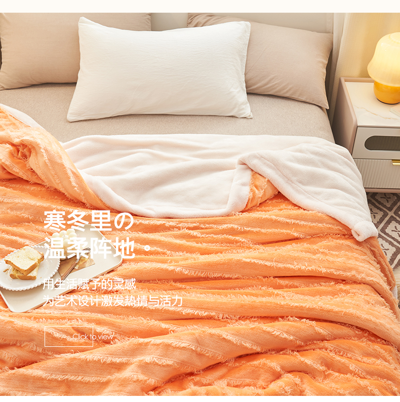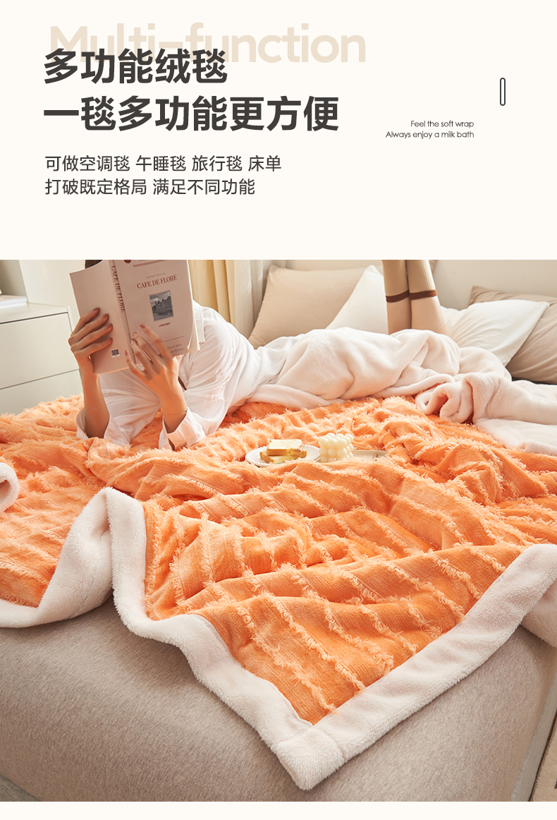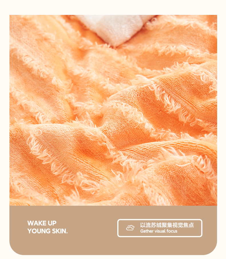 商品名称:吾诺家居 2024新款流苏绒多功能毯盖毯毯子 桔色流苏毯