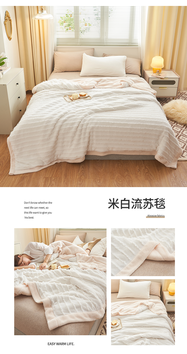 (总)吾诺 手工织带款雕花牛奶绒四件套 工艺款飞边拼角 - 绽放系列,条纹灰,条纹白,叶纹驼,叶纹兰,条纹玉,叶纹灰
