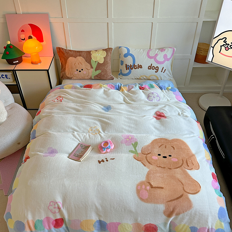 商品名称:桃喜 2024新款大版数码印花牛奶绒四件套 元气小狗-绒