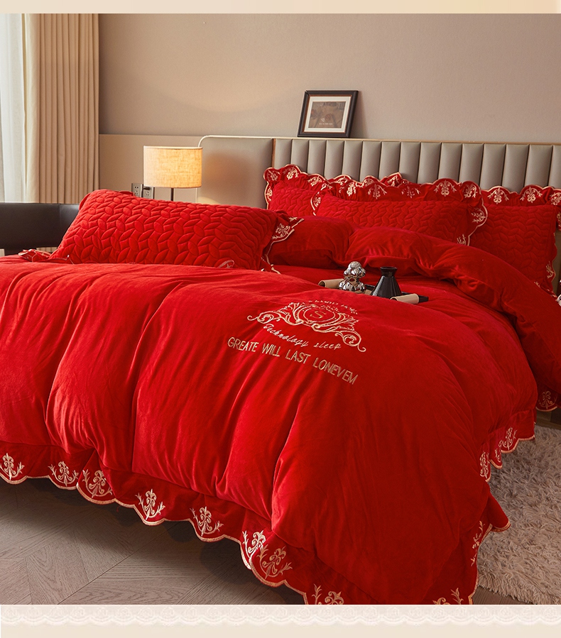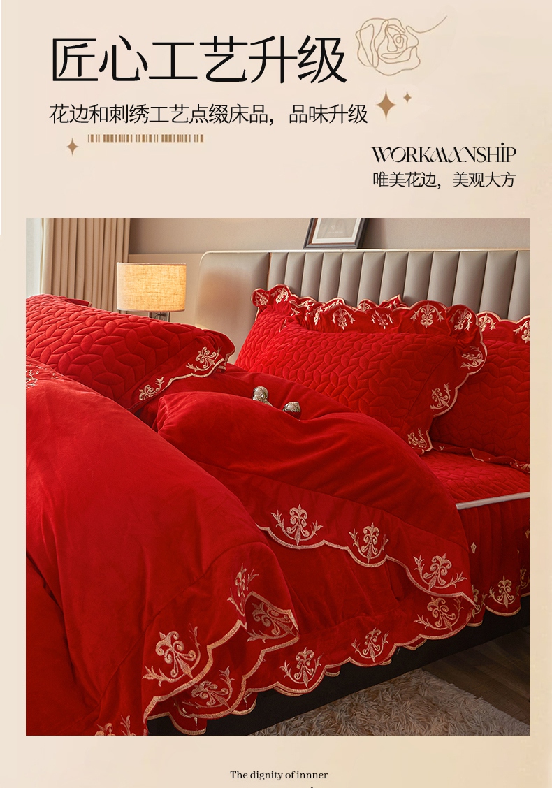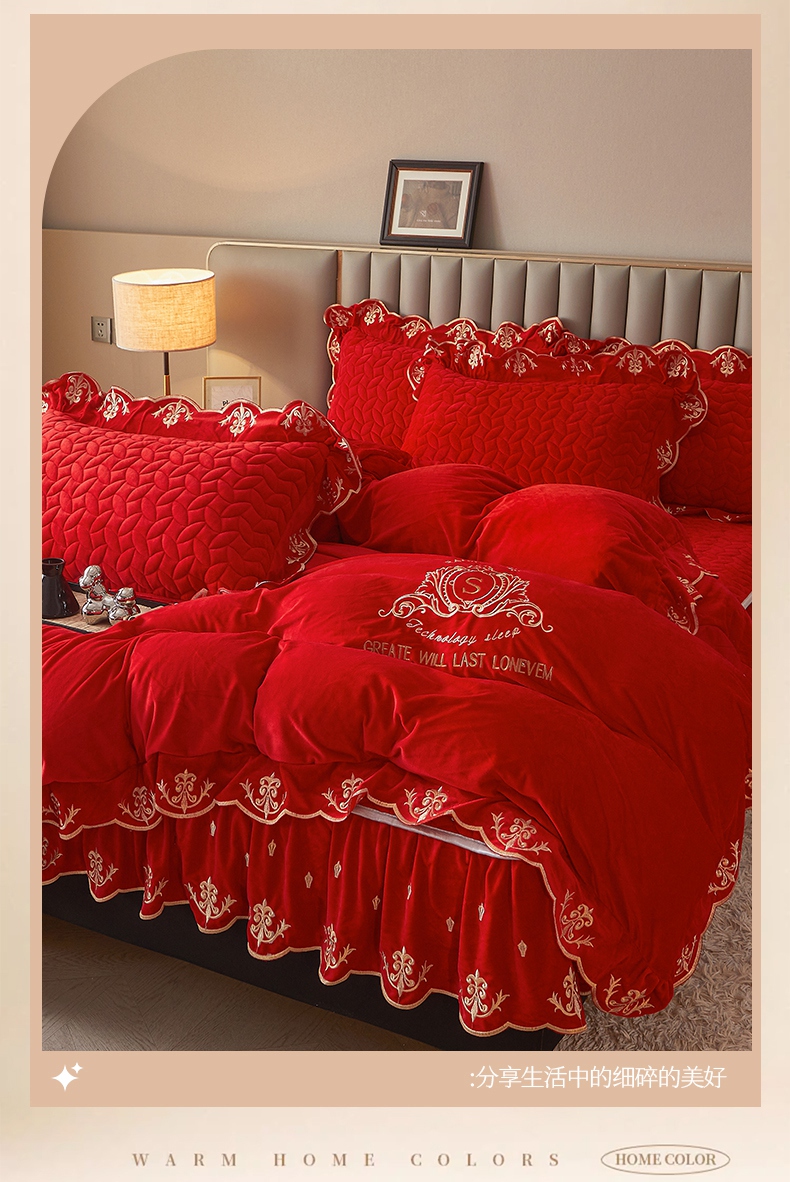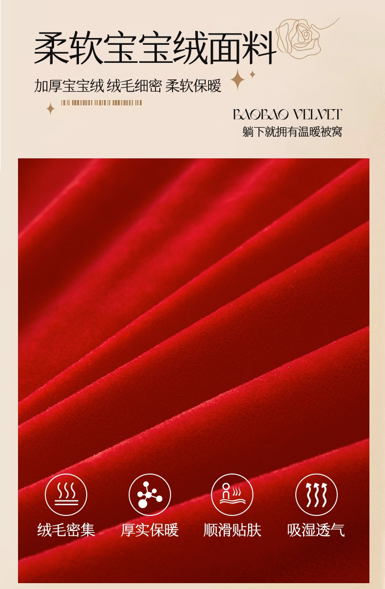 当前位置: 91家纺网 > 商品网购 > 床品套件 > 四件套 > 宝宝绒四件套 > 恒爱家纺 2024新款初黛宝宝绒系列四件套 喜庆红