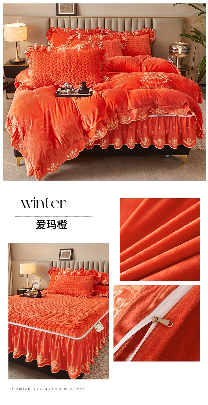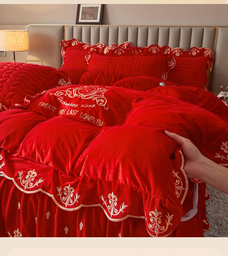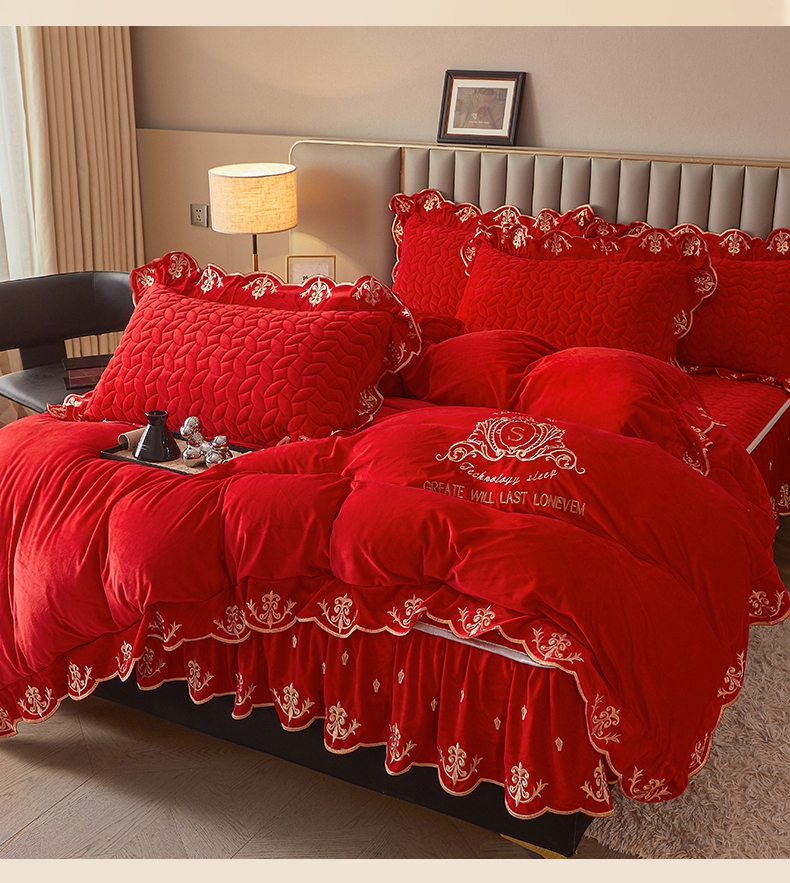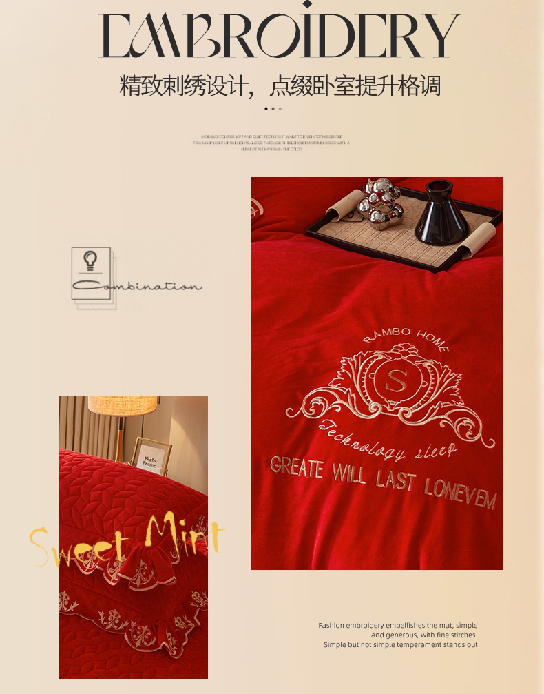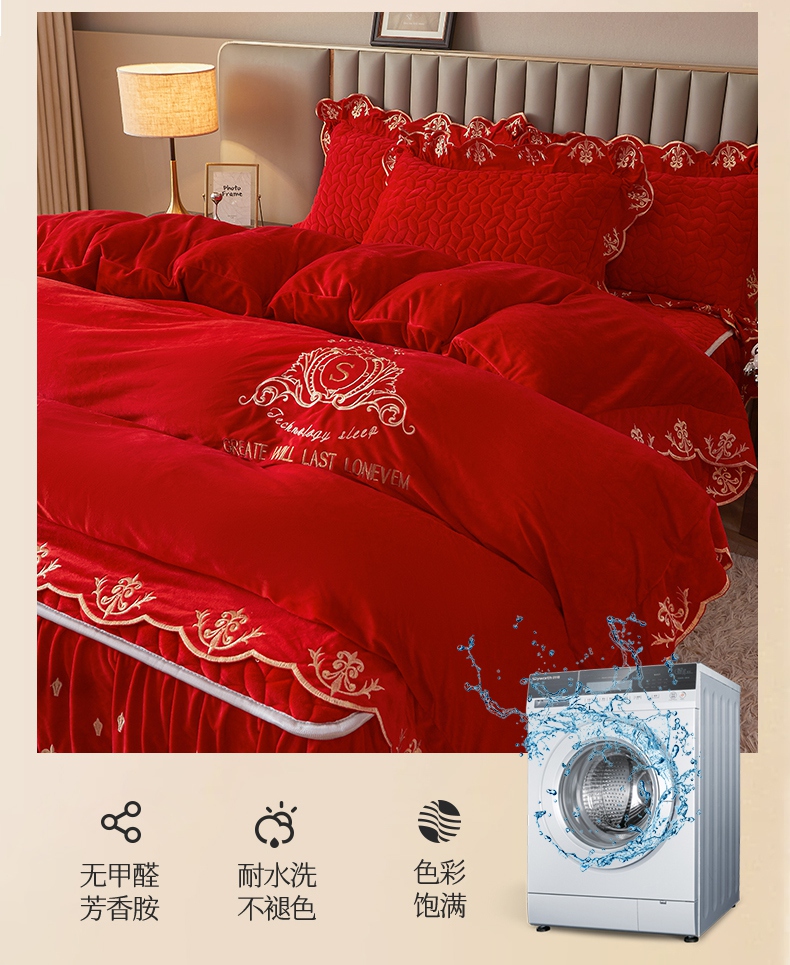 当前位置: 91家纺网 > 商品网购 > 床品套件 > 四件套 > 宝宝绒四件套 > 恒爱家纺 2024新款初黛宝宝绒系列四件套 喜庆红